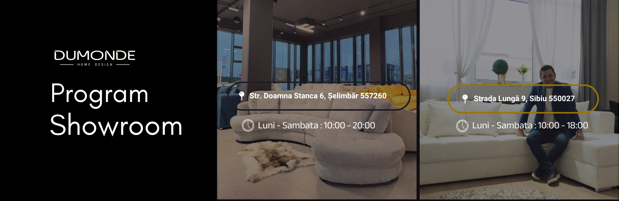 La Dumonde, oferim o gamă variată de mobilier online, perfect adaptat pentru orice tip de locuință. Căutați o canapea confortabilă pentru sufrageria dvs. sau un pat elegant pentru dormitor? La noi găsiți tot ce aveți nevoie, de la piese clasice la cele contemporane, fiecare proiectată pentru a aduce un plus de stil și funcționalitate casei dvs.