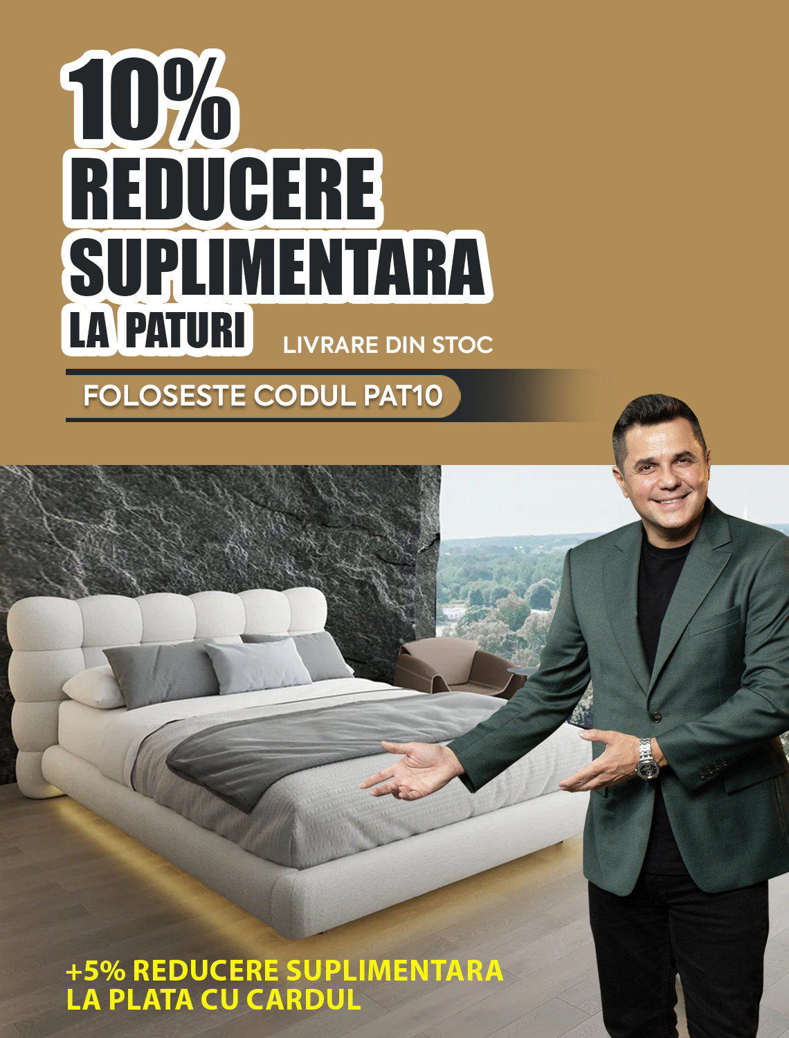 Da, pe lângă plata integrală, îți oferim și posibilitatea de plată în rate fără dobândă prin partenerii noștri financiari, astfel încât să îți fie mai ușor să achiziționezi mobilierul dorit.