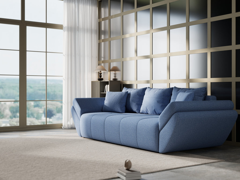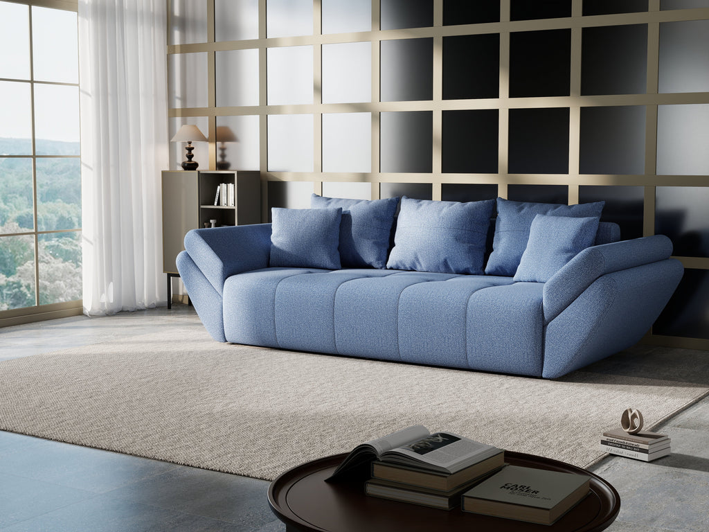 Canapea extensibilă dumonde cu ladă de depozitare si sezut confortabil din spuma HR, Berlin Enjoy Blue 250x100 cm