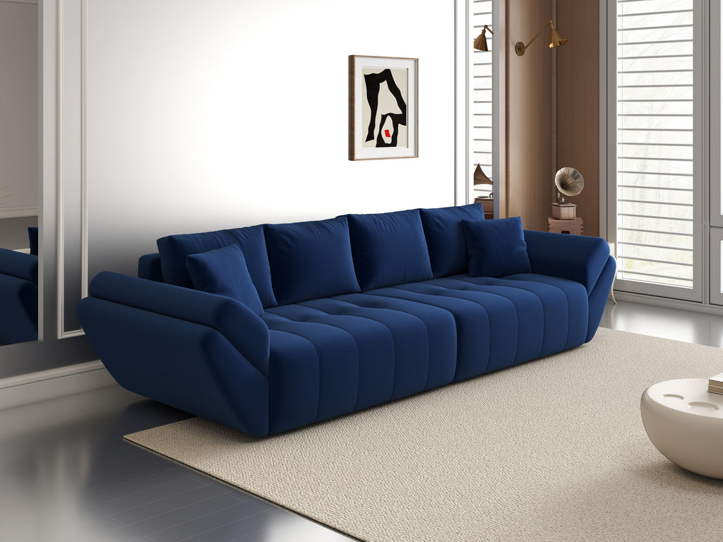 Canapea extensibilă dumonde cu ladă de depozitare si sezut confortabil din spuma HR, Berlin Royal Blue 300x100 cm