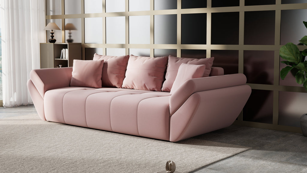 Canapea extensibilă dumonde cu ladă de depozitare si sezut confortabil din spuma HR, Berlin Royal Pink 250x100 cm