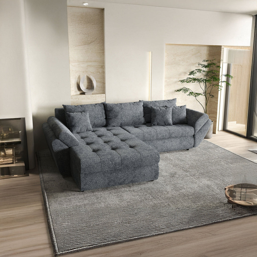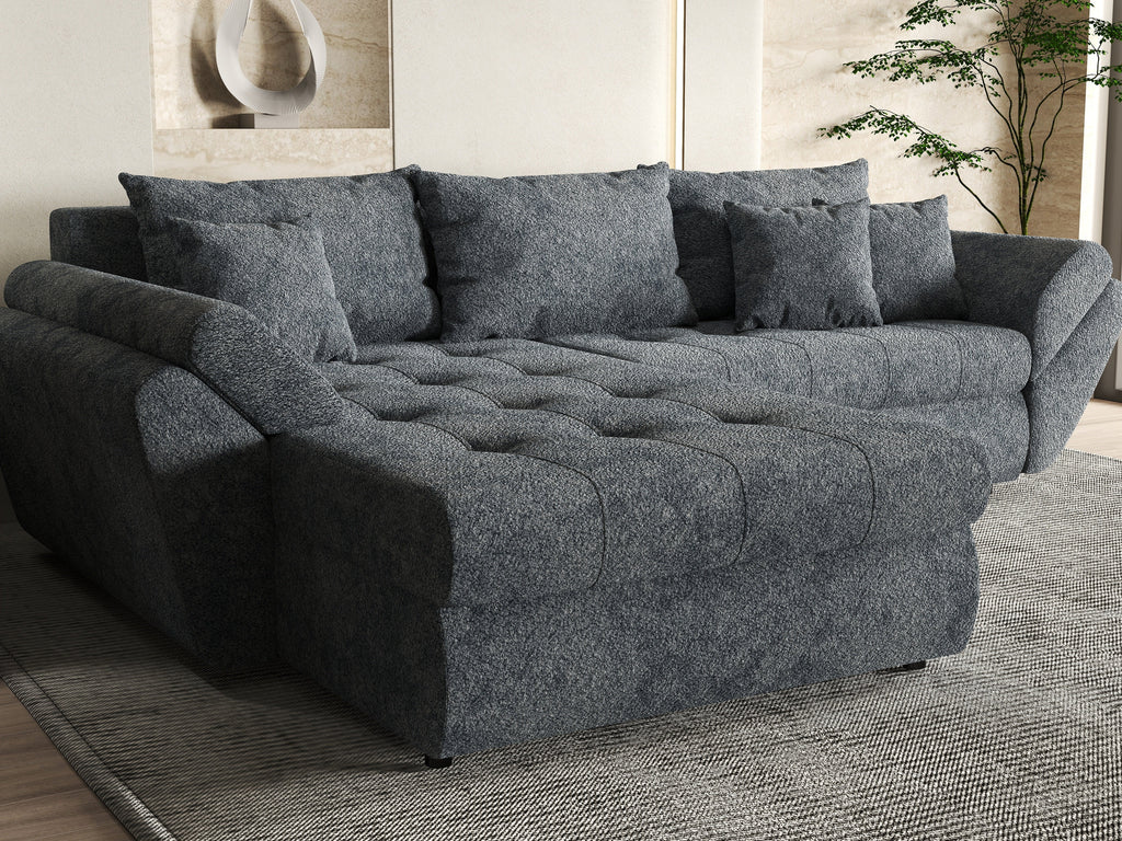 Colțar extensibil dumonde cu ladă de depozitare si sezut confortabil din spuma HR, Loana Euphoria Graphit 270x185 cm