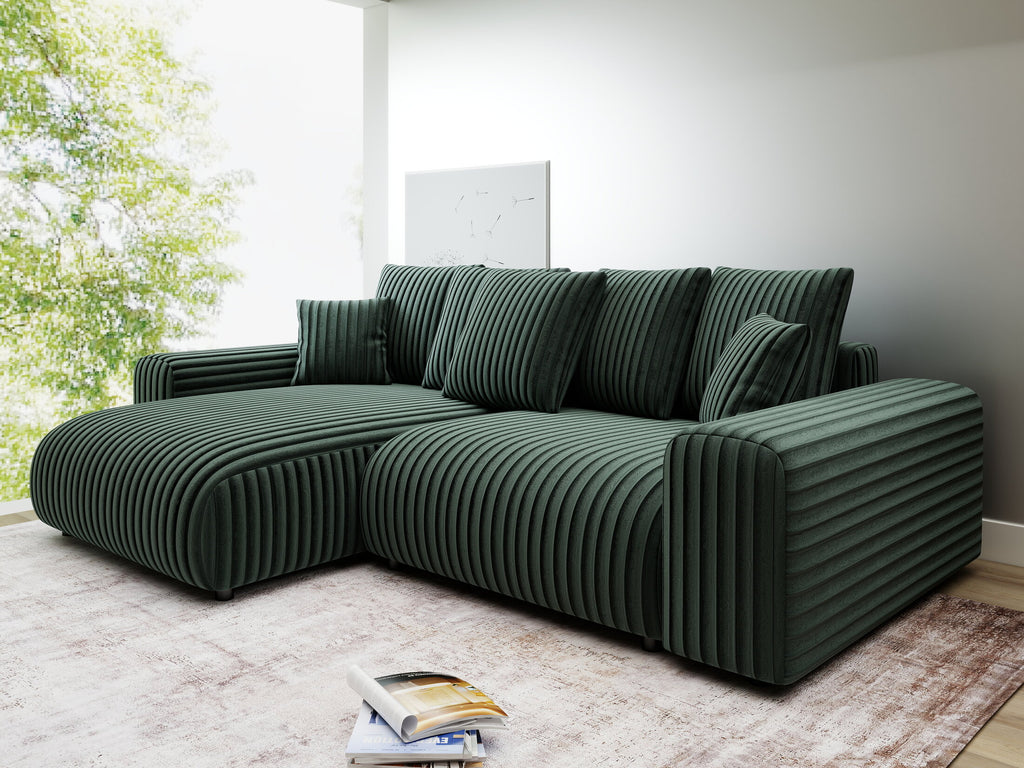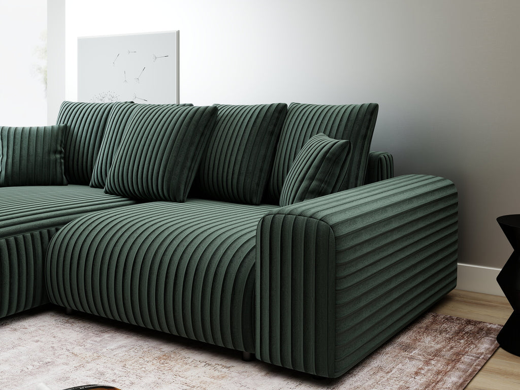 Colțar extensibil dumonde cu ladă de depozitare și șezut confortabil din spumă HR, Luma Ambience Verde 255x168 cm