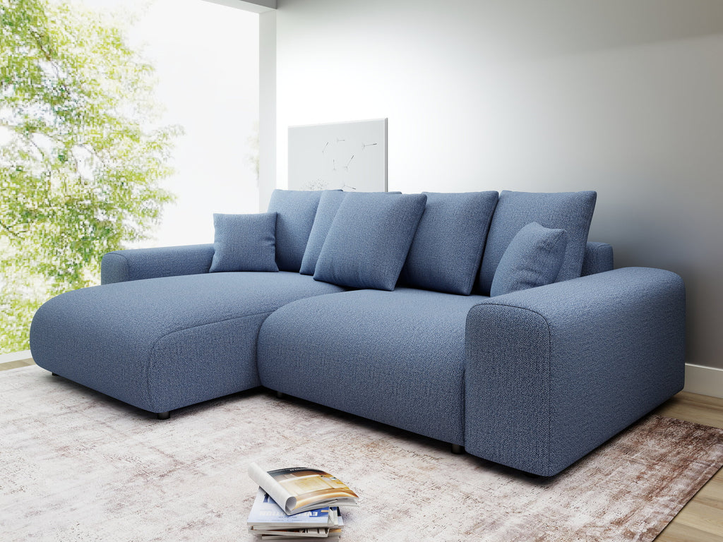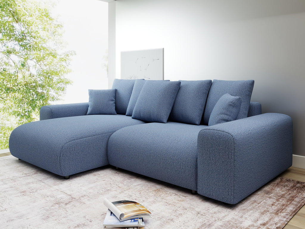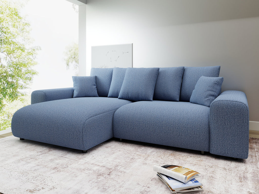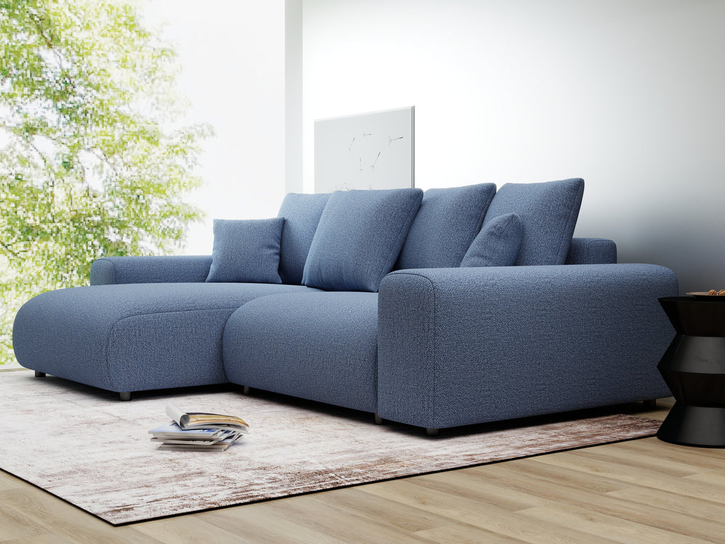 Colțar extensibil dumonde cu ladă de depozitare și șezut confortabil din spumă HR, Luma Enjoy Albastru 255x168 cm