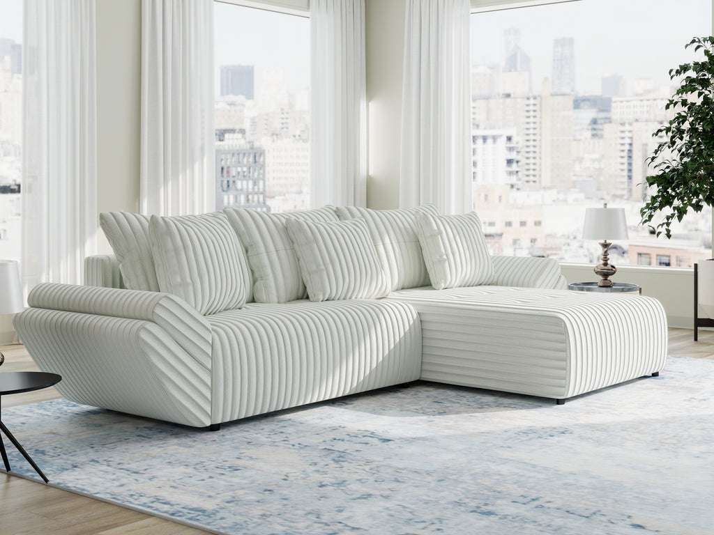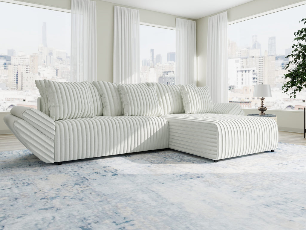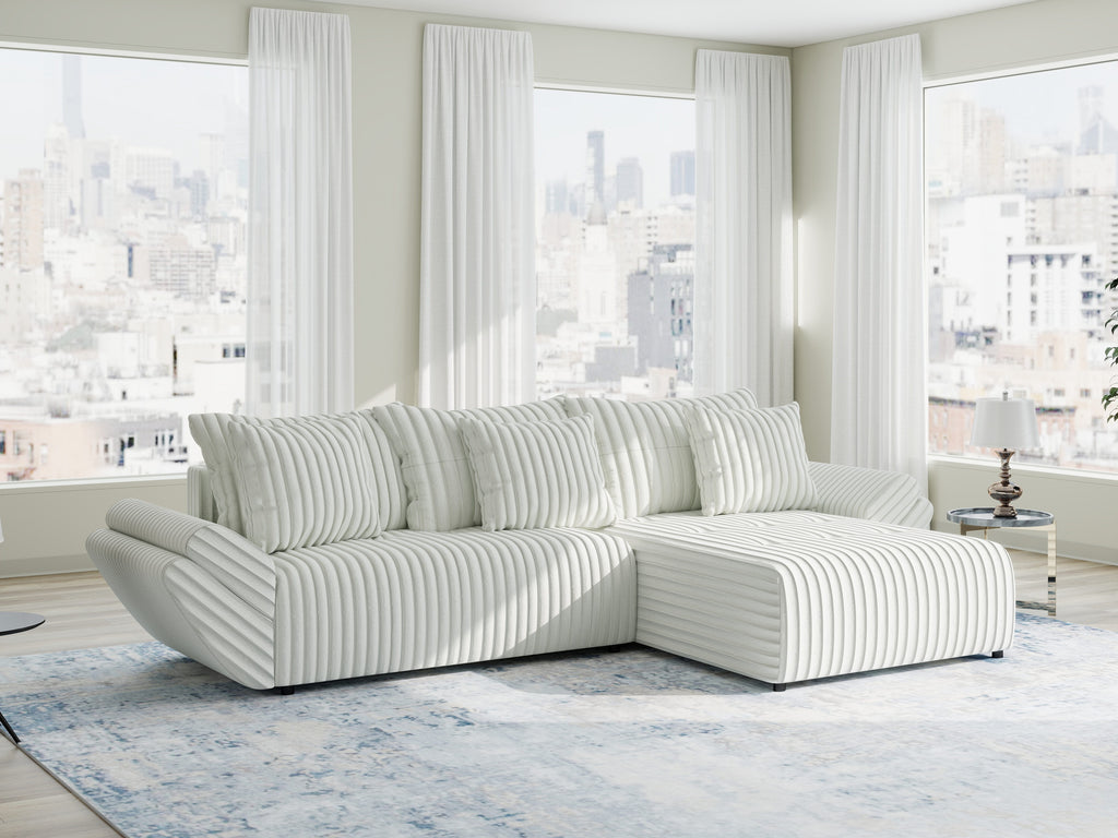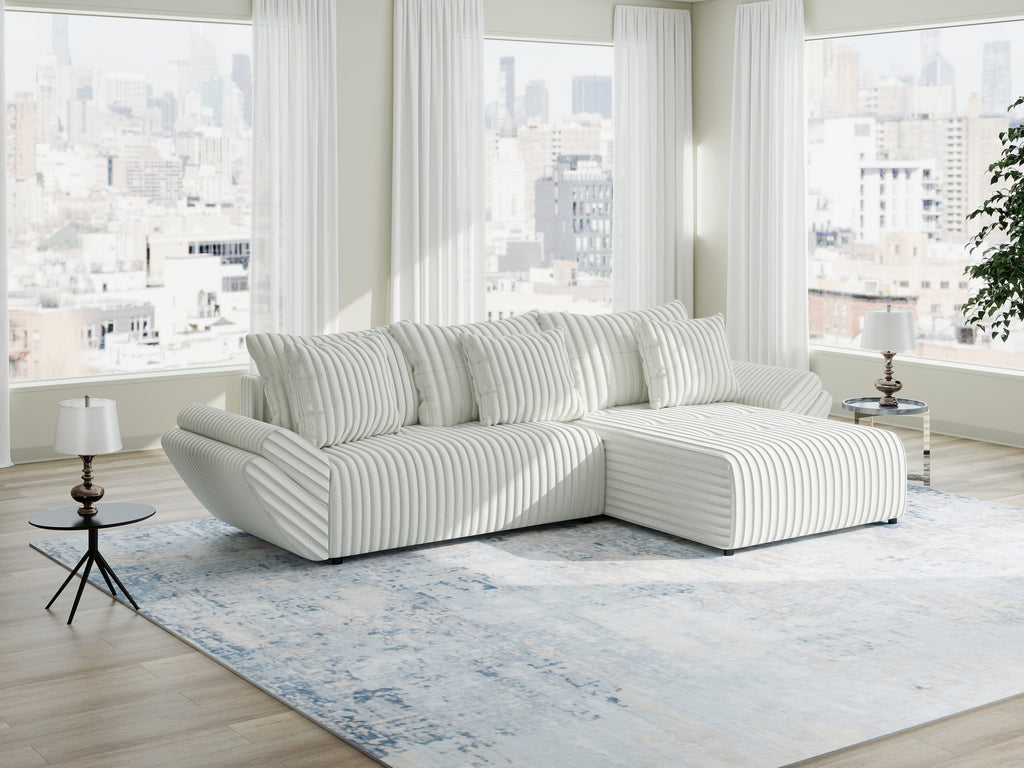 Colțar extensibil dumonde cu ladă de depozitare si sezut confortabil din spuma HR, Berlin Ambience Alb 280x185 cm II