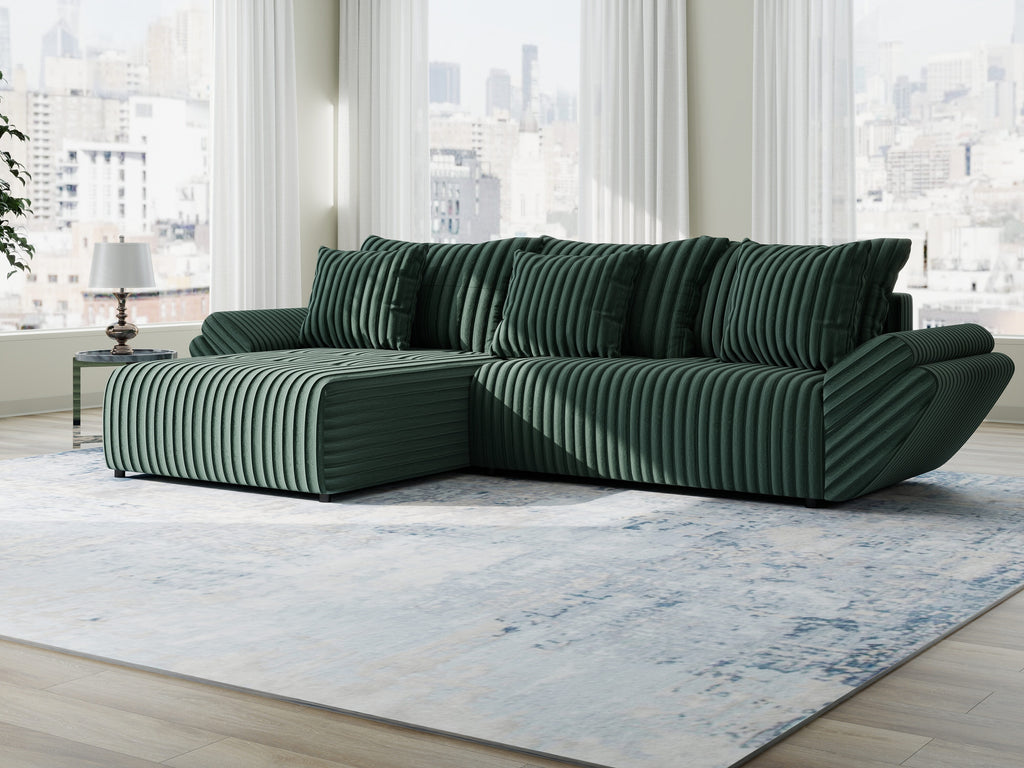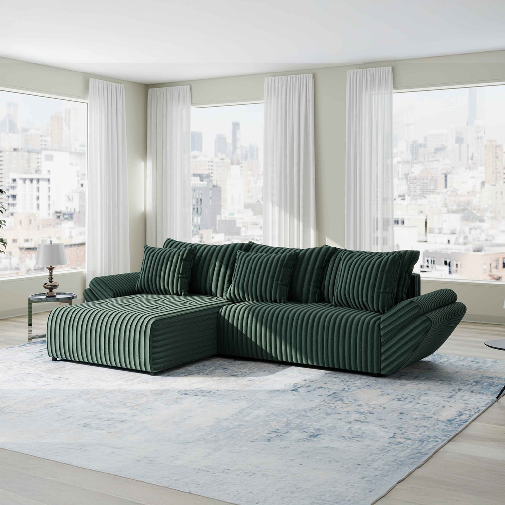 Colțar extensibil dumonde cu ladă de depozitare si sezut confortabil din spuma HR, Berlin Ambience Verde 280x185 cm