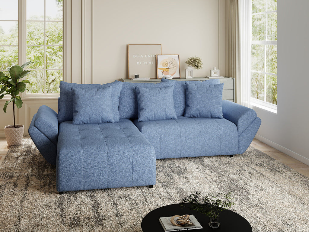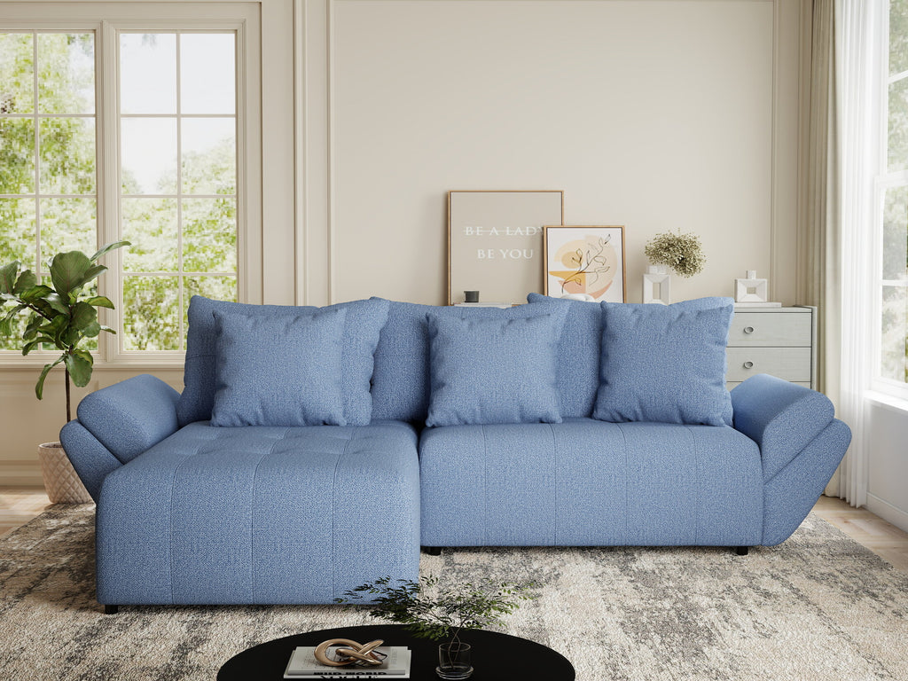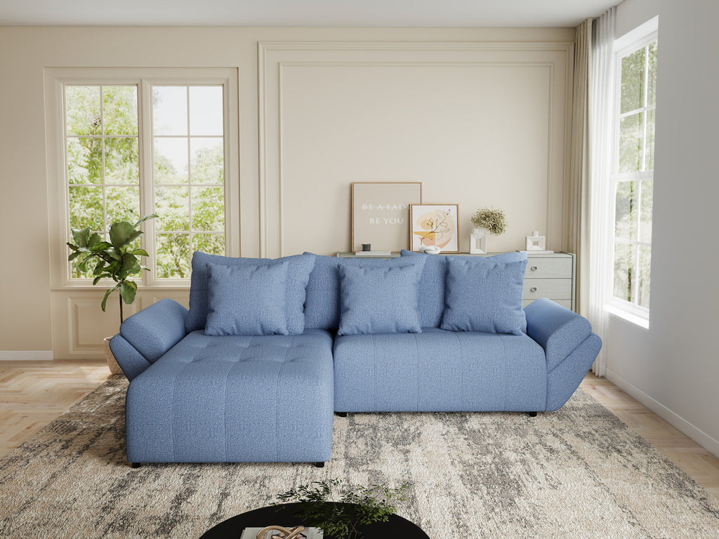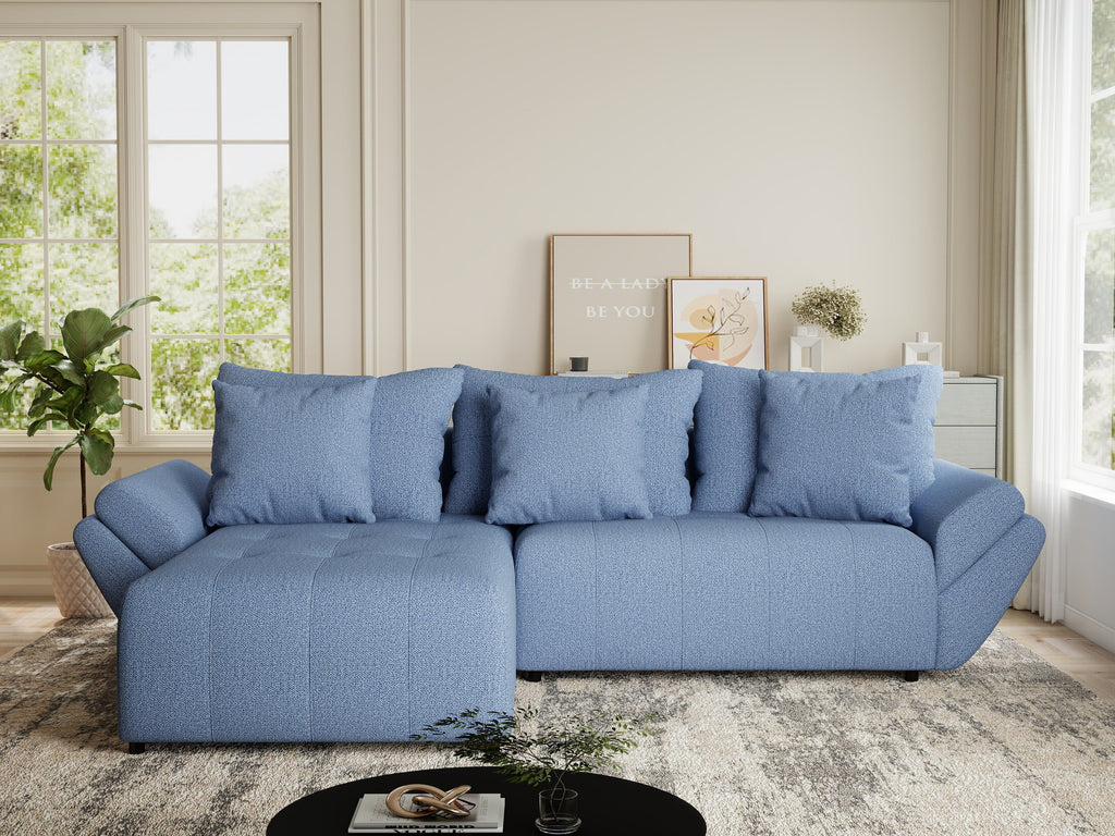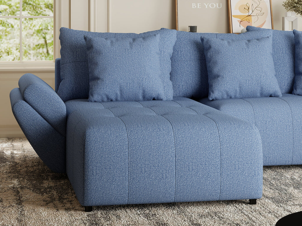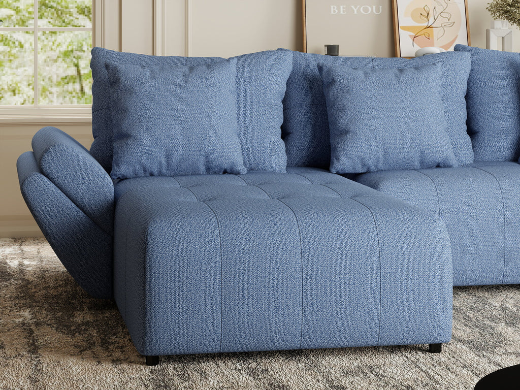 Colțar extensibil dumonde cu ladă de depozitare si sezut confortabil din spuma HR, Berlin Enjoy Albastru 280x185 cm