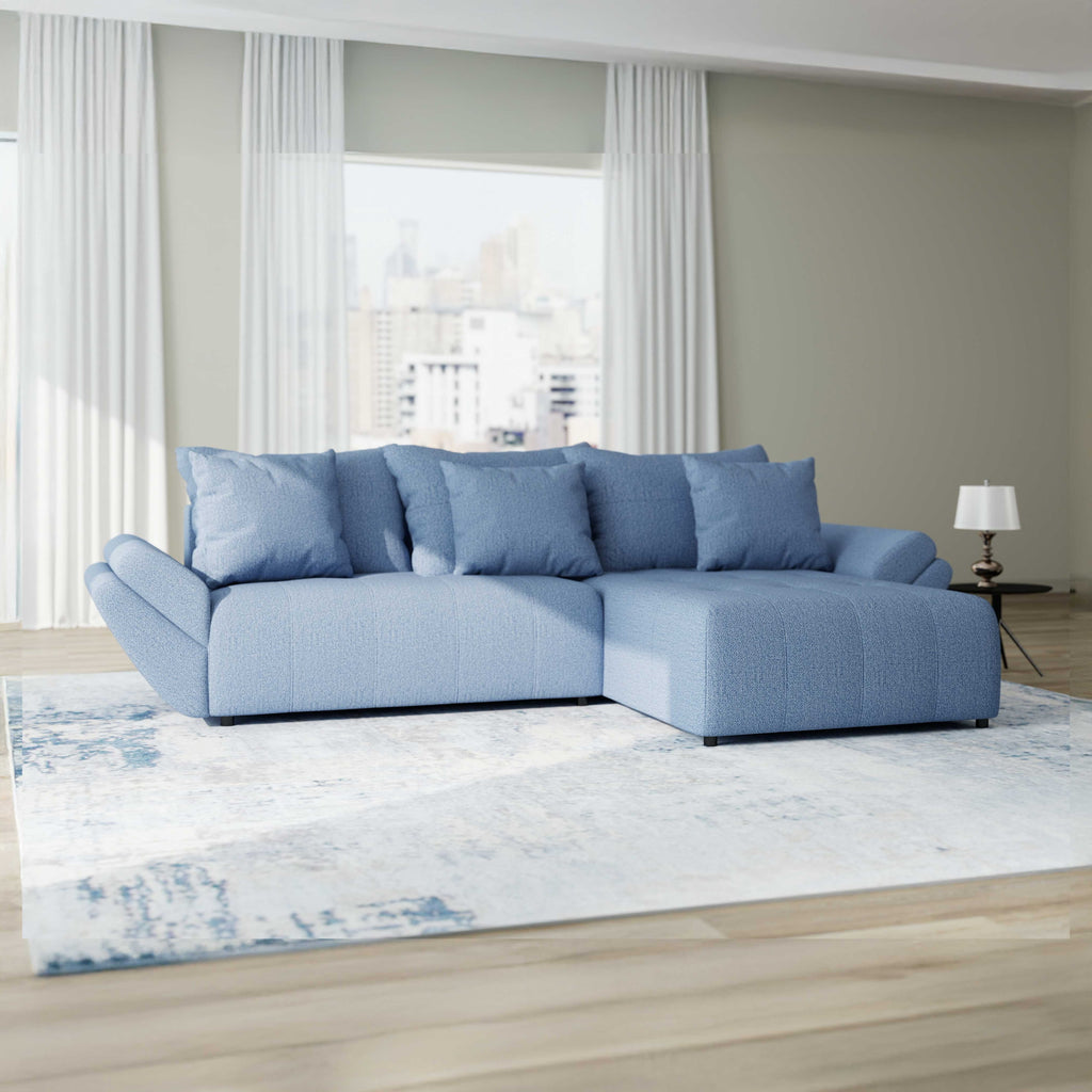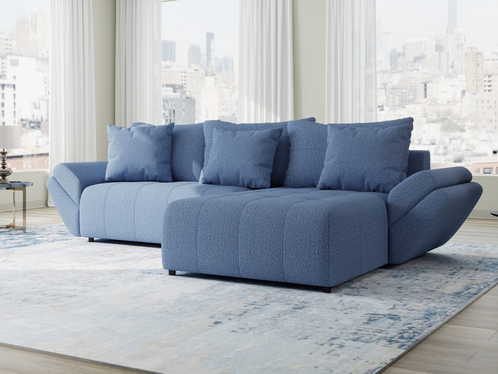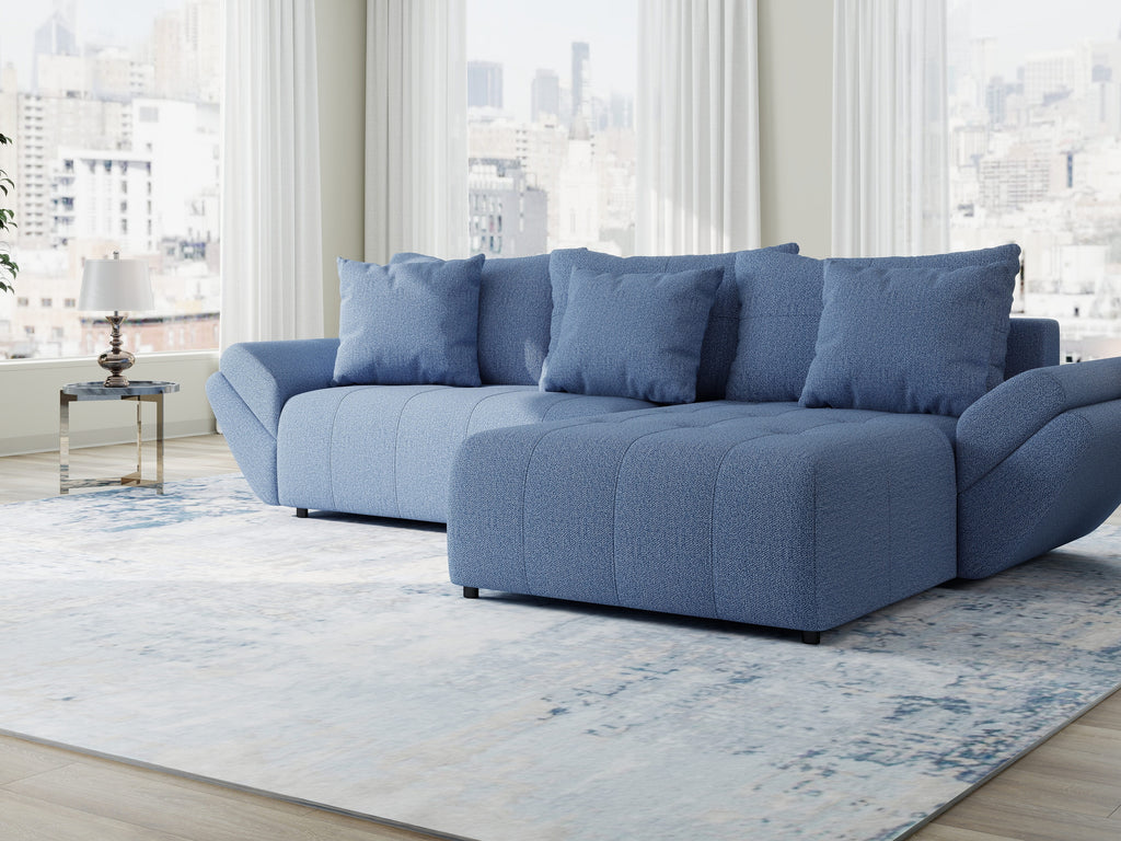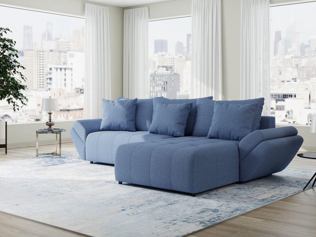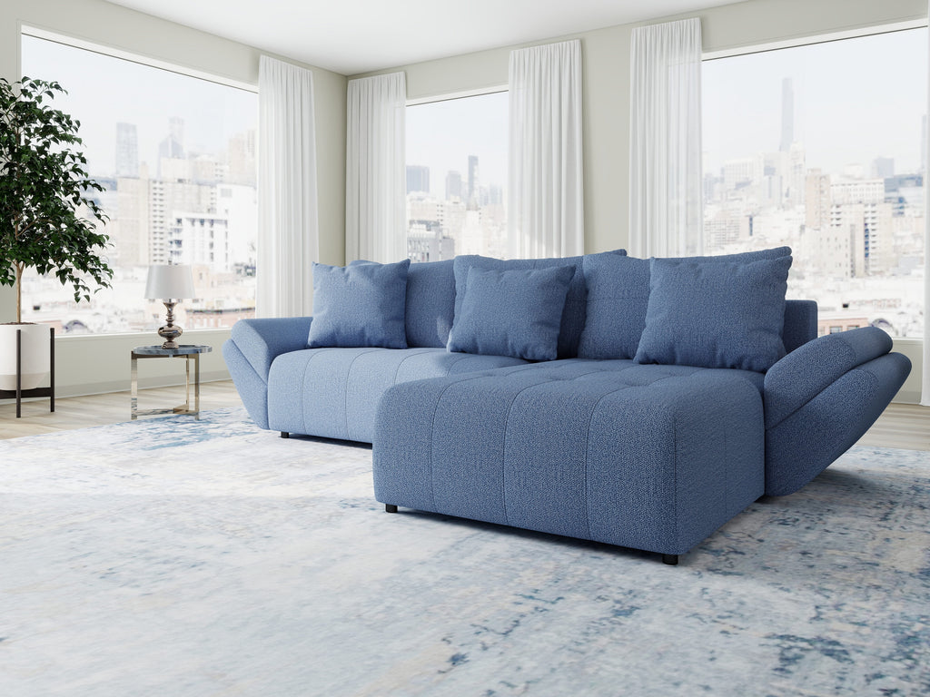 Colțar extensibil dumonde cu ladă de depozitare si sezut confortabil din spuma HR, Berlin Enjoy Albastru 280x185 cm II