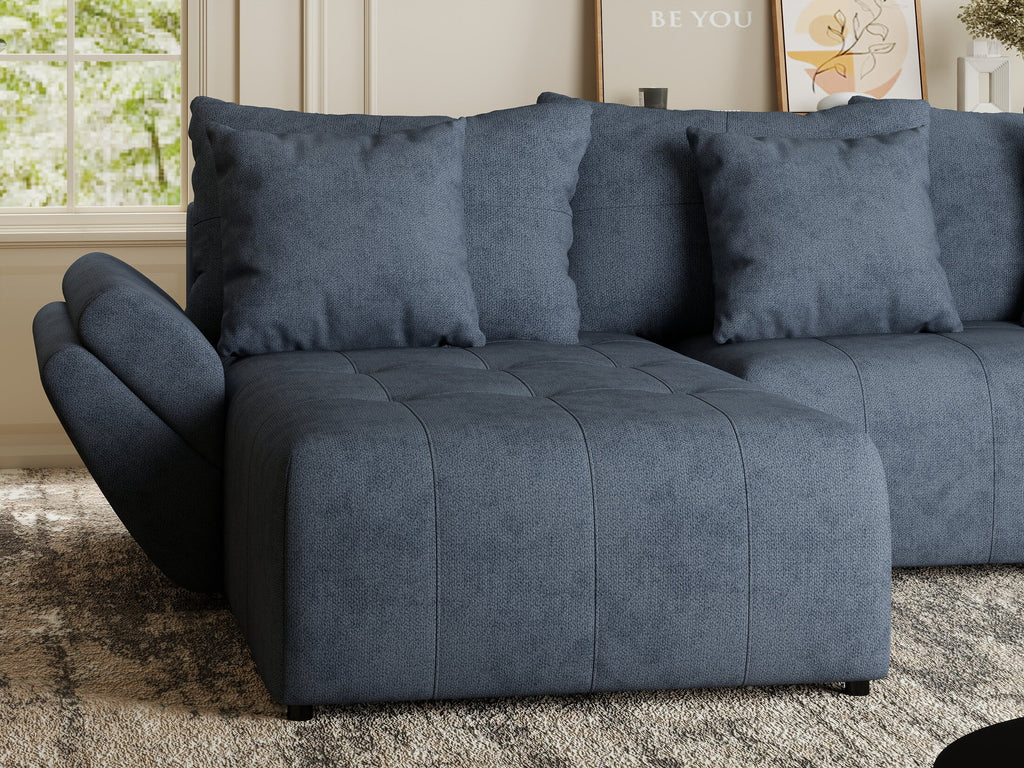 • Șezutul confortabil este prevăzut cu umplutură de spumă de inaltă densitate iar pernele din fața spătarului oferă stabilitate. Devine un real ajutor atunci când aveți musafiri peste noapte, prin transformarea ușoară și rapida într-un pat confortabil și generos.