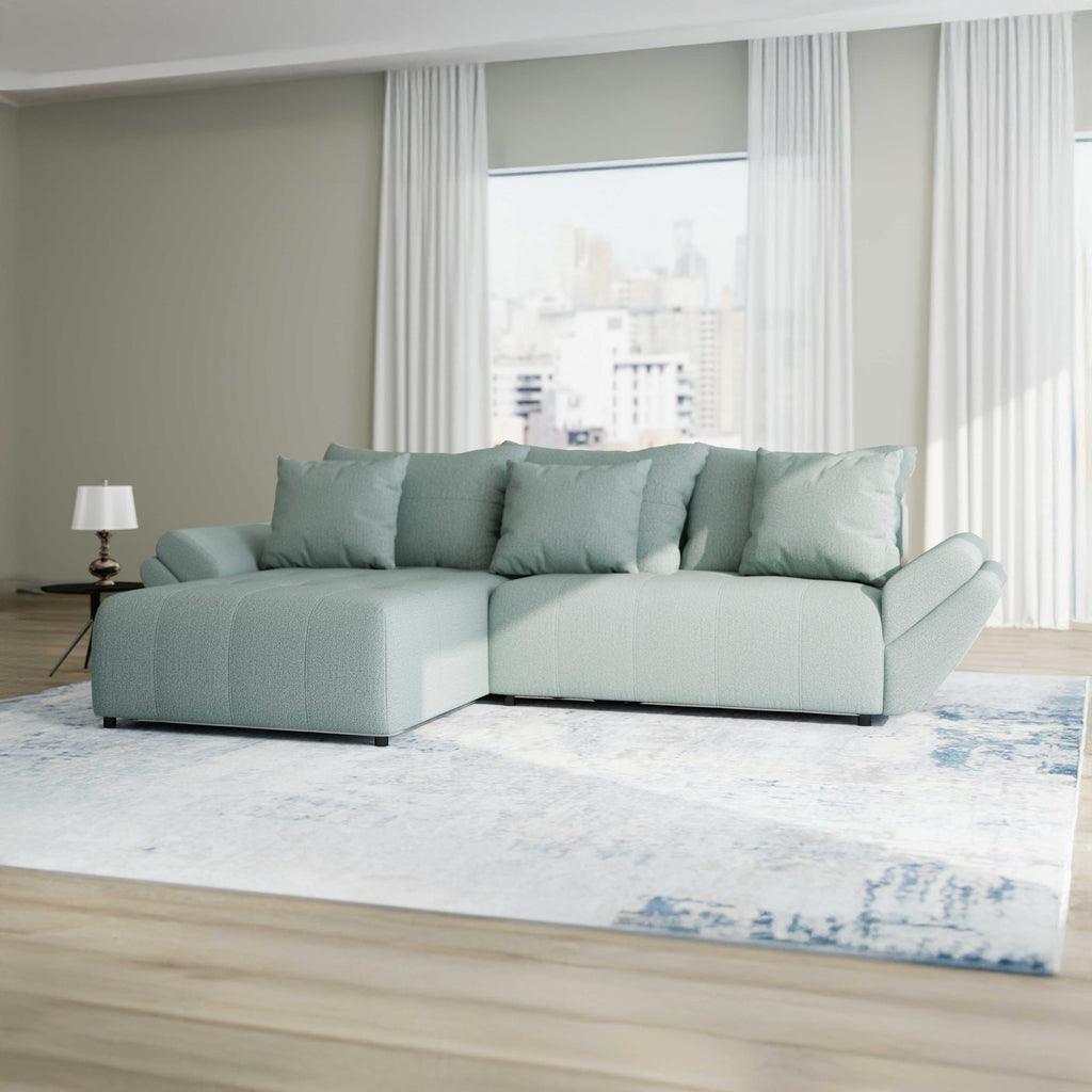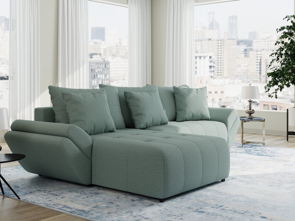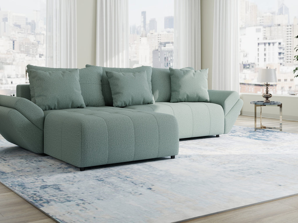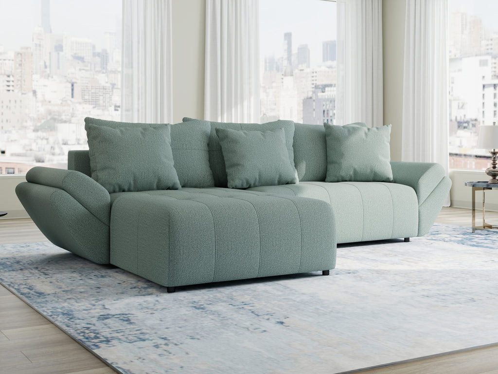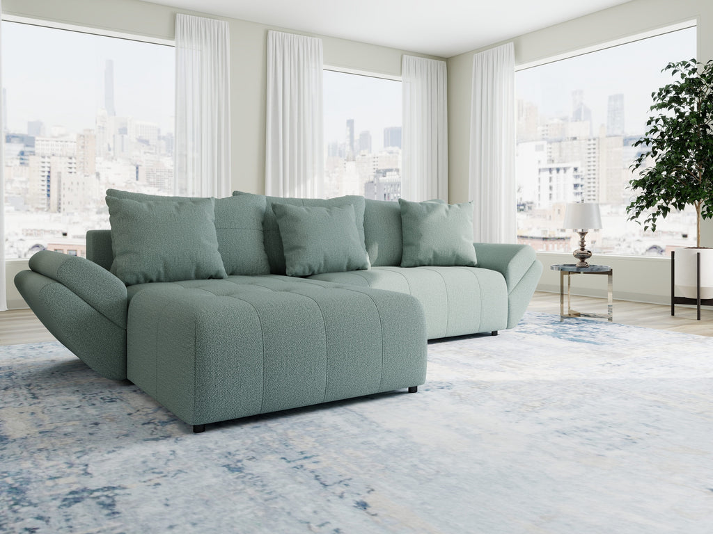 Colțar extensibil dumonde cu ladă de depozitare si sezut confortabil din spuma HR, Berlin Enjoy Verde Mint 280x185 cm