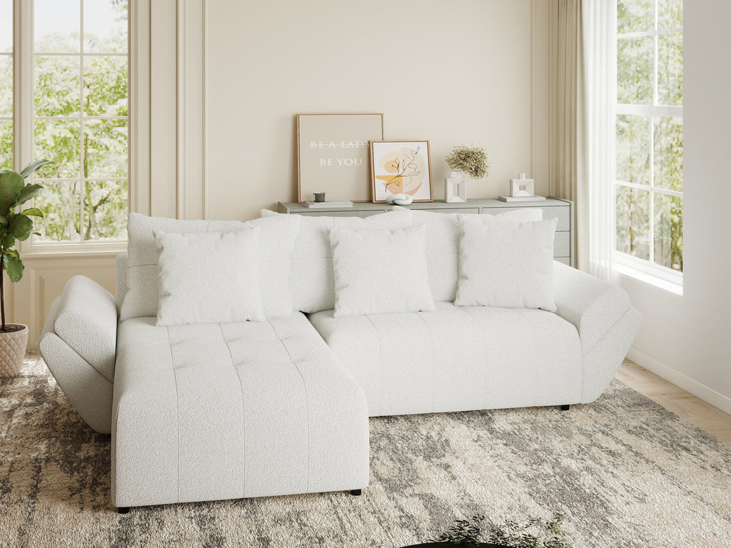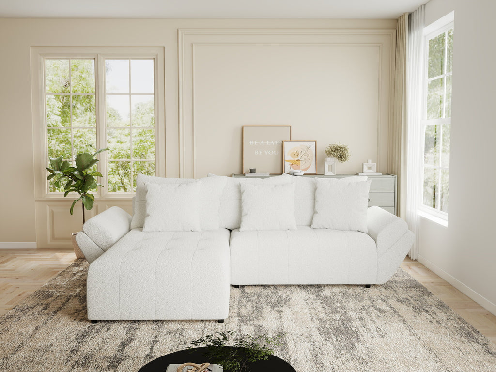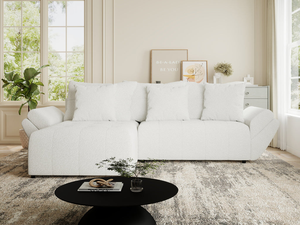 Colțar extensibil dumonde cu ladă de depozitare si sezut confortabil din spuma HR, Berlin Euphoria Alb 280x185 cm