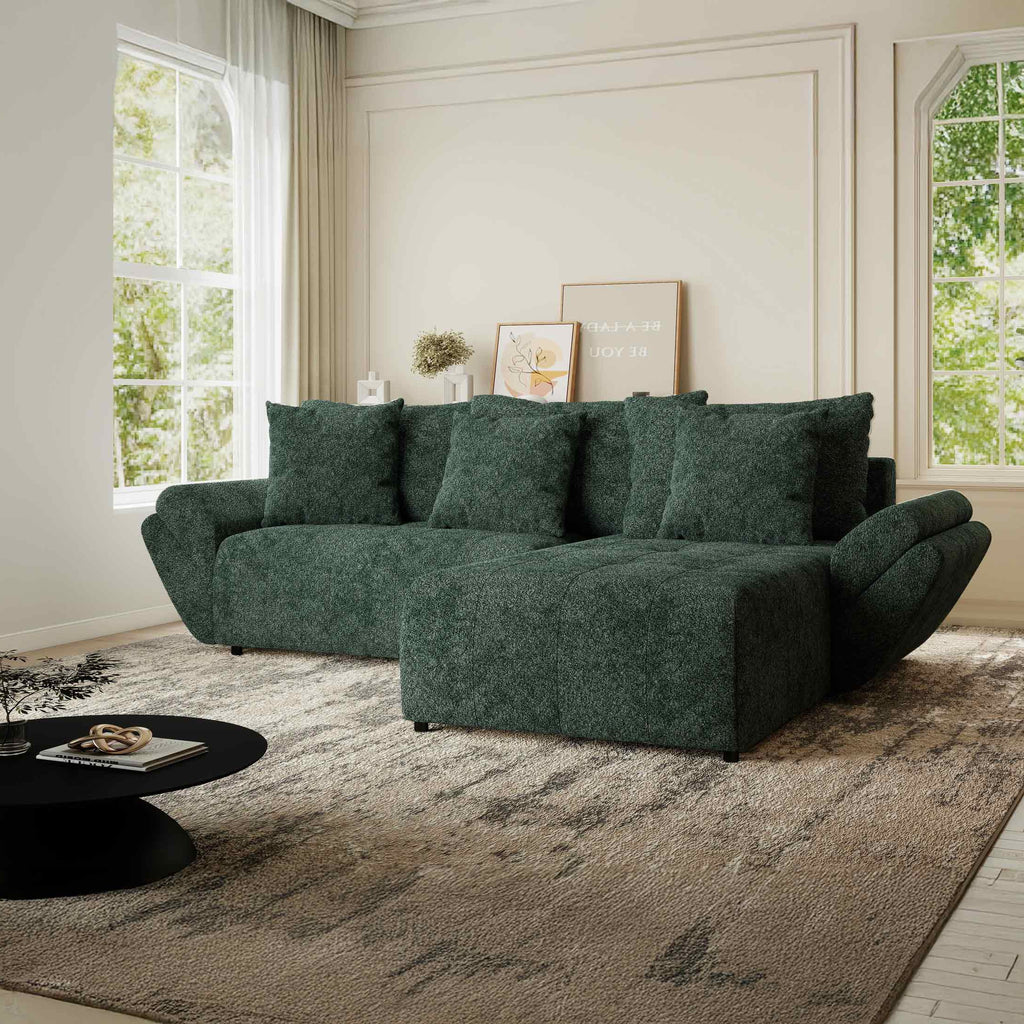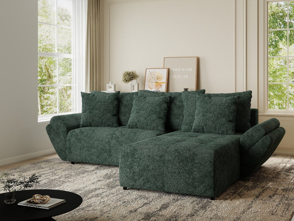 Colțar extensibil dumonde cu ladă de depozitare si sezut confortabil din spuma HR, Berlin Euphoria Verde 280x185 cm II