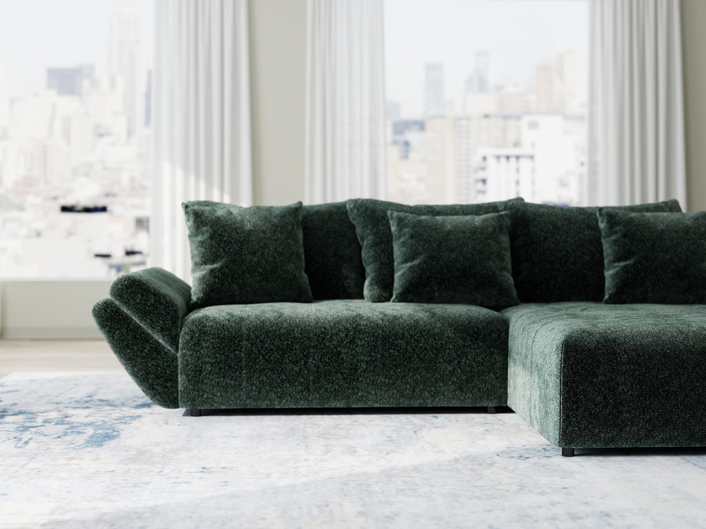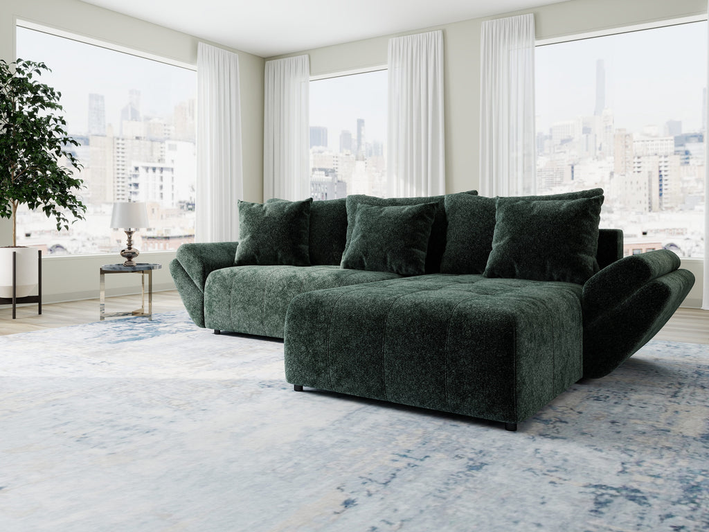 Colțar extensibil dumonde cu ladă de depozitare si sezut confortabil din spuma HR, Berlin Euphoria Verde 280x185 cm II