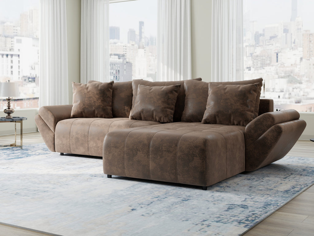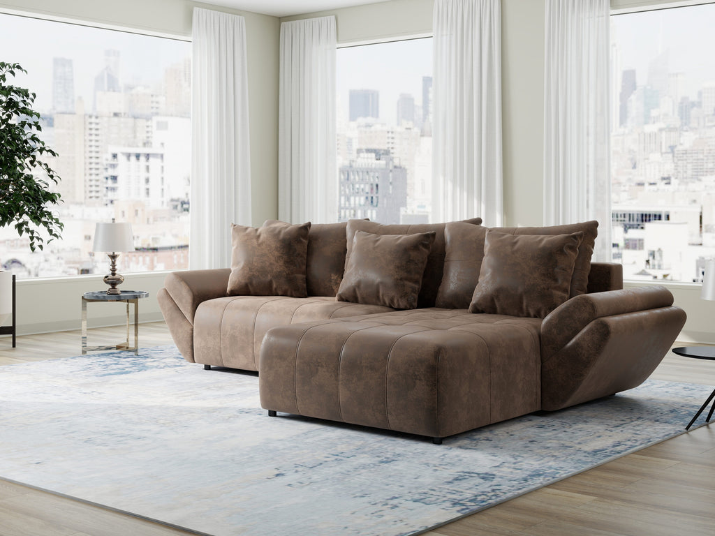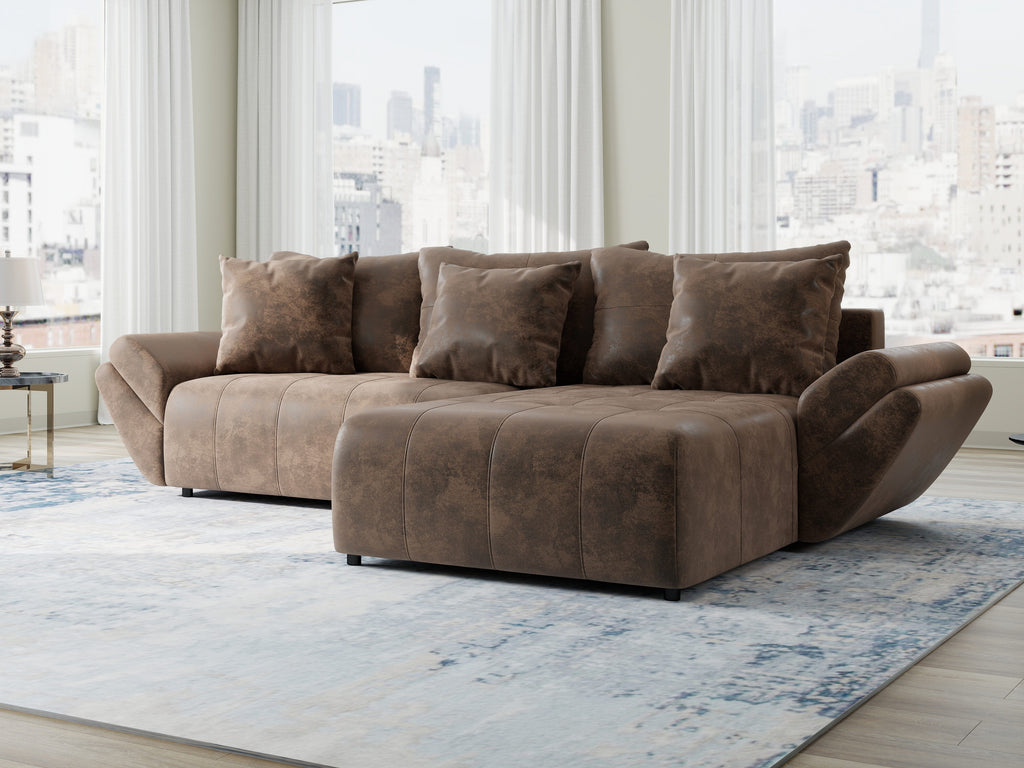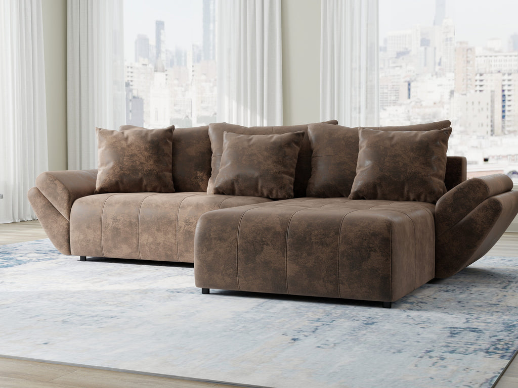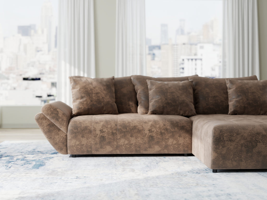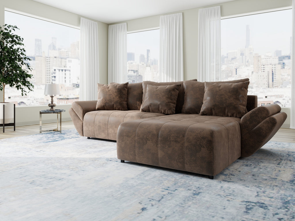 Colțar extensibil dumonde cu ladă de depozitare si sezut confortabil din spuma HR, Berlin Madagaskar Maro 280x185 cm II
