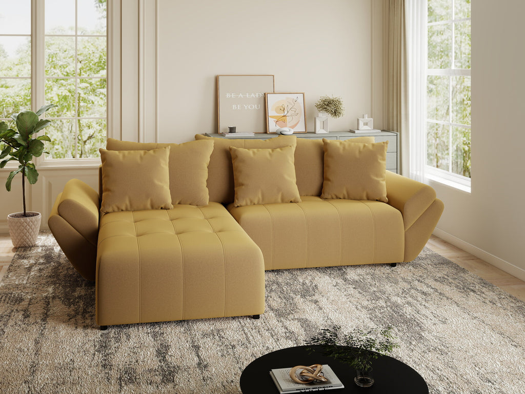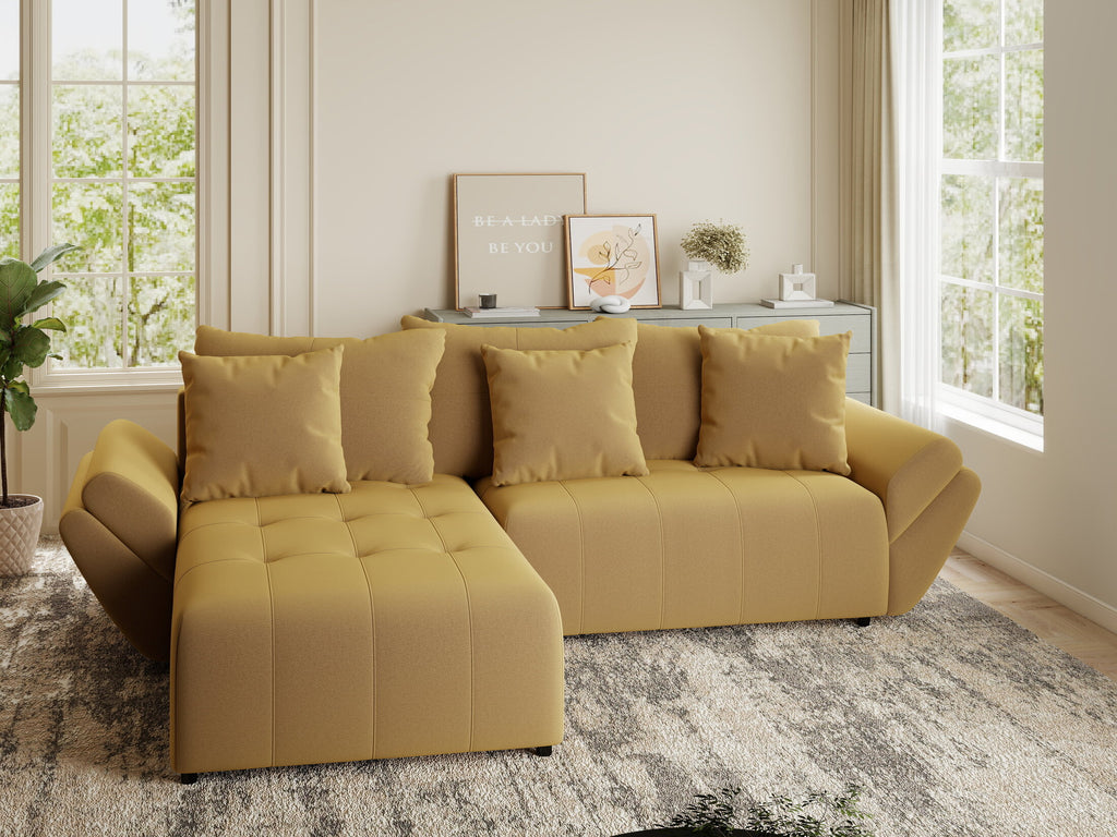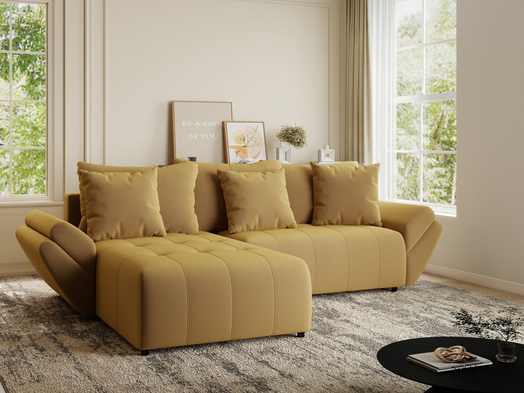 Colțar extensibil dumonde cu ladă de depozitare si sezut confortabil din spuma HR, Berlin Royal Galben Mustar 280x185 cm