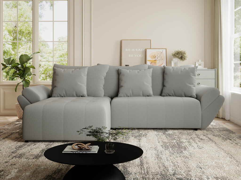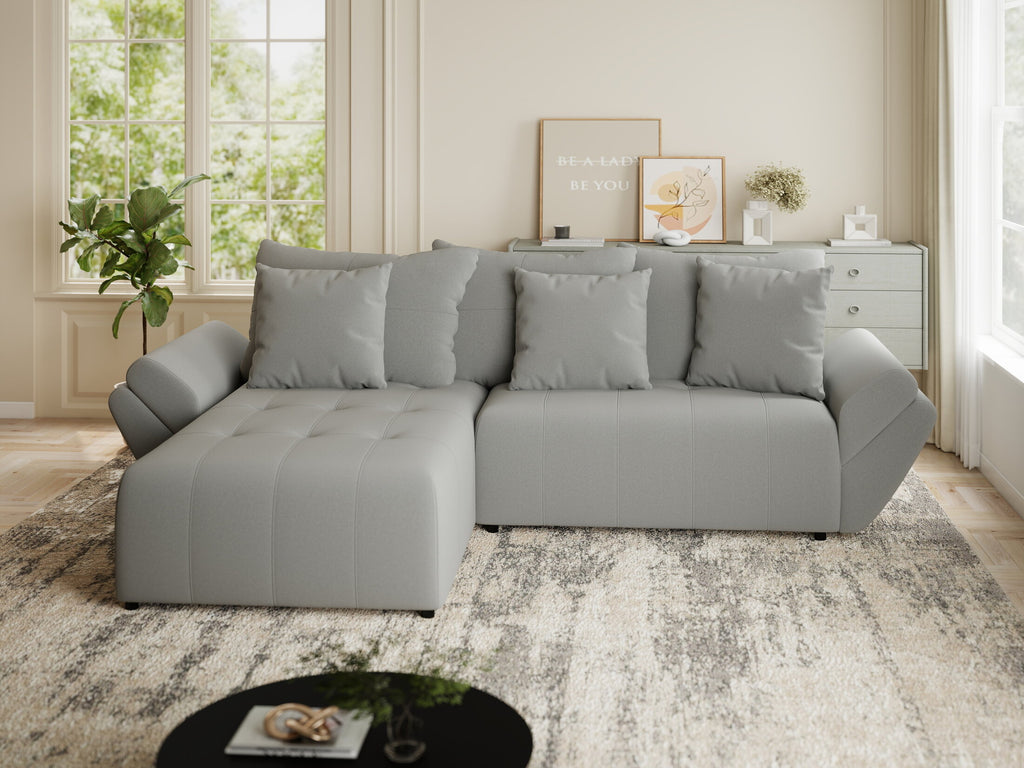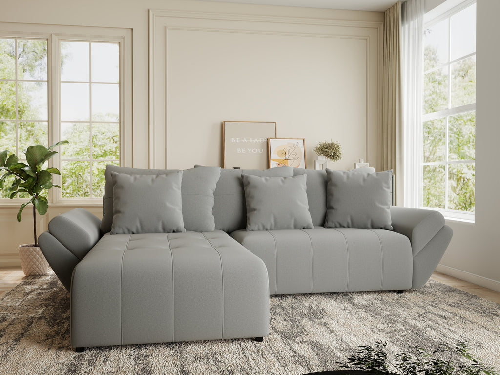 Colțar extensibil dumonde cu ladă de depozitare si sezut confortabil din spuma HR, Berlin Royal Gri 280x185 cm