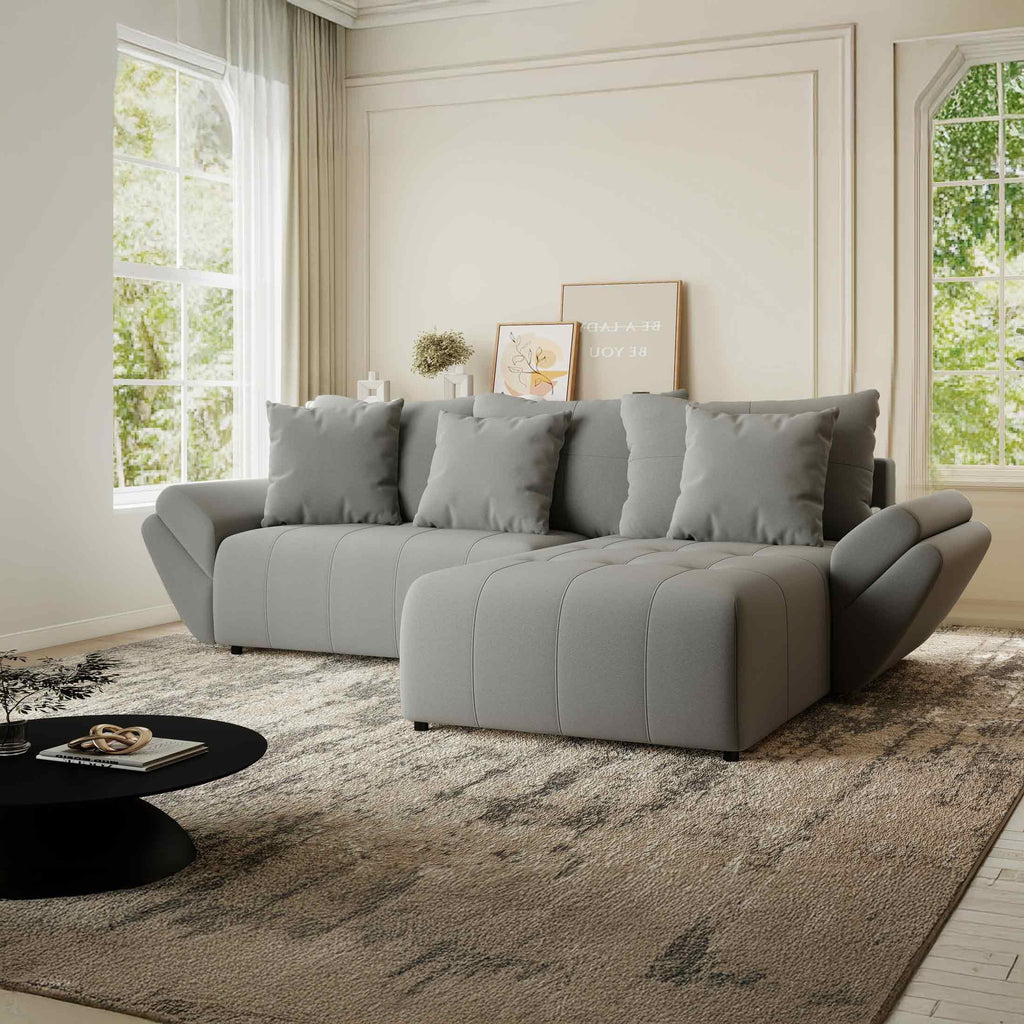 Colțar extensibil dumonde cu ladă de depozitare si sezut confortabil din spuma HR, Berlin Royal Gri 280x185 cm II