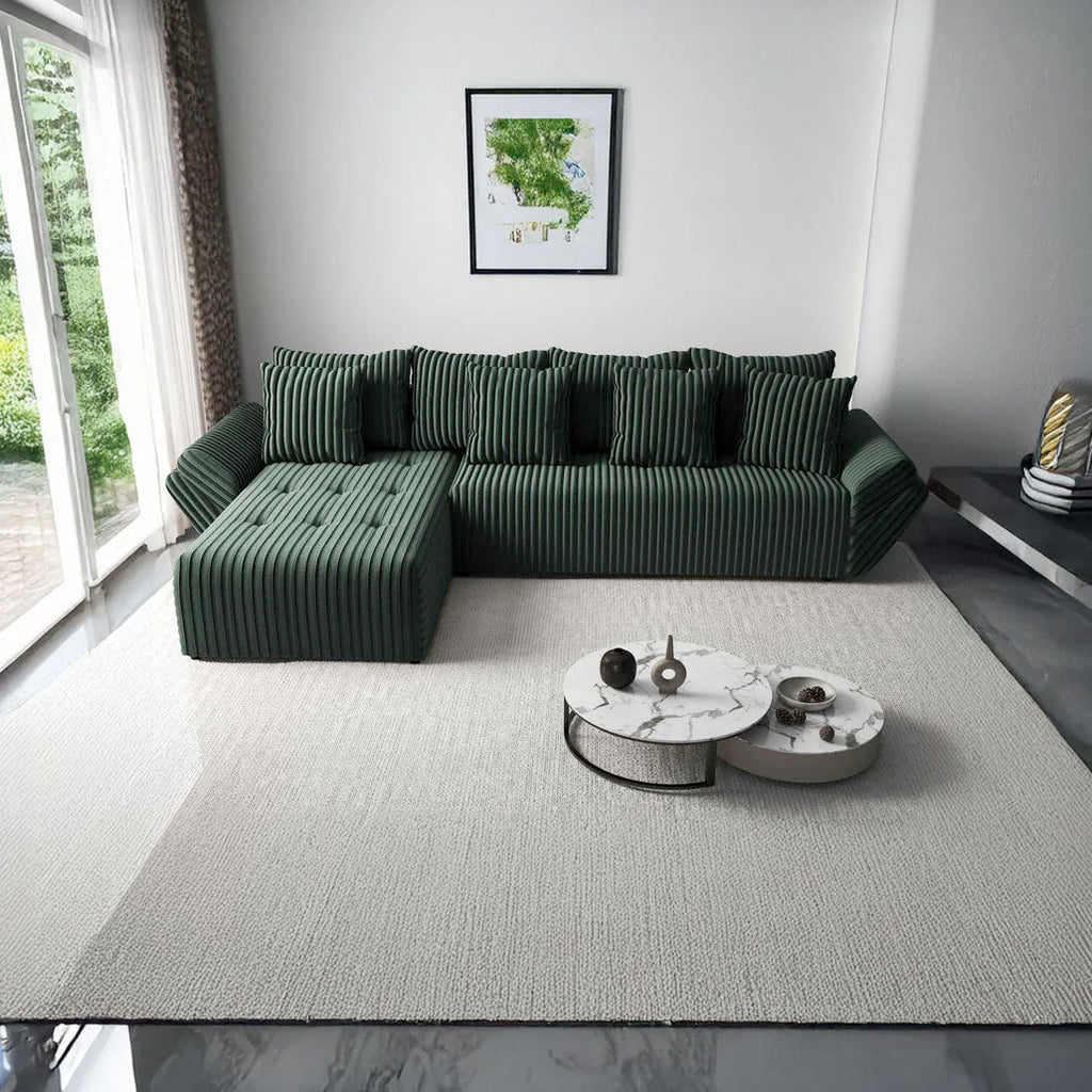 Colțar extensibil dumonde cu ladă de depozitare si sezut confortabil din spuma HR, Berlin XL Ambience Green 350x185 cm