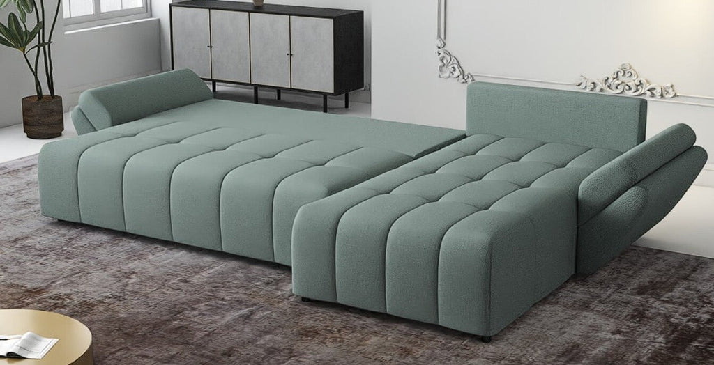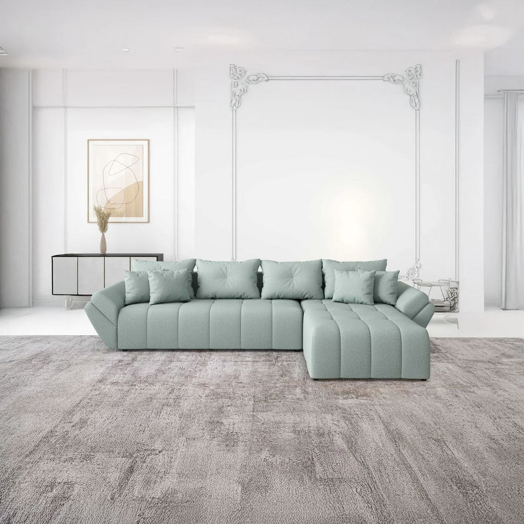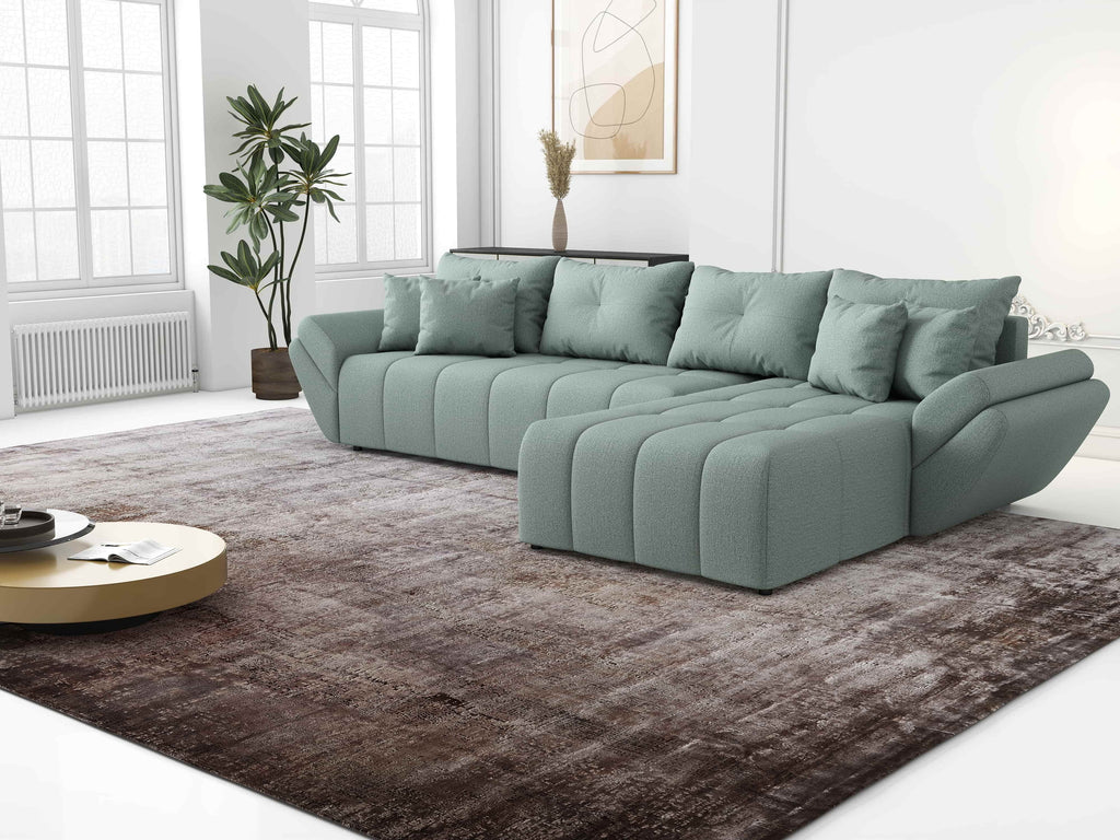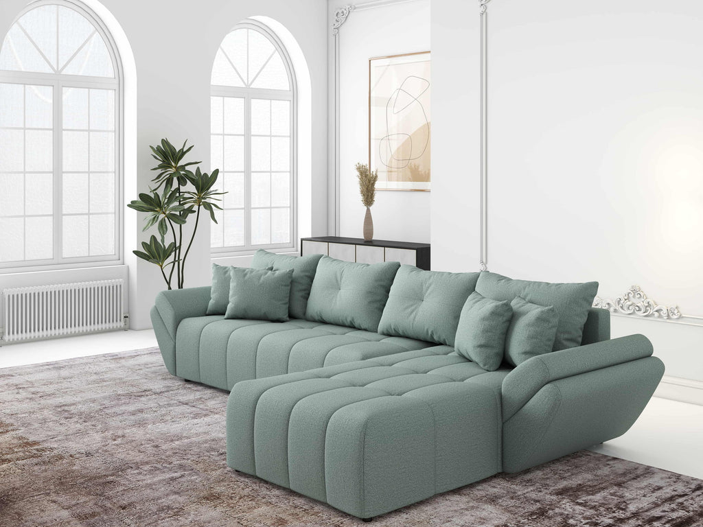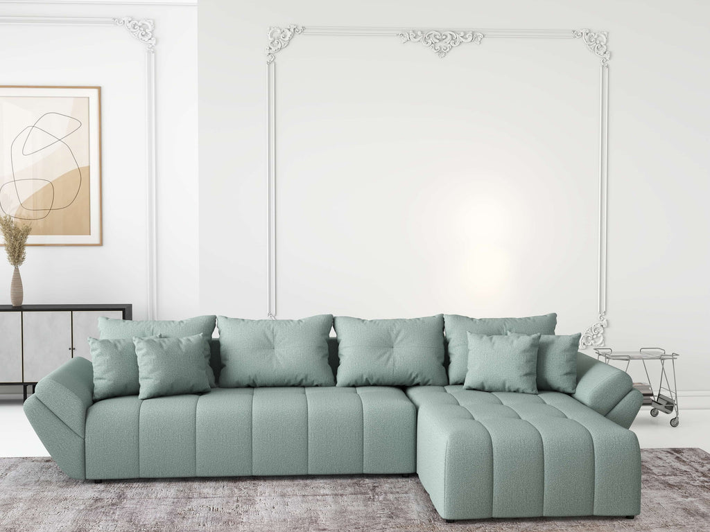 Colțar extensibil dumonde cu ladă de depozitare si sezut confortabil din spuma HR, Berlin XL Enjoy Mint 350x185 cm II