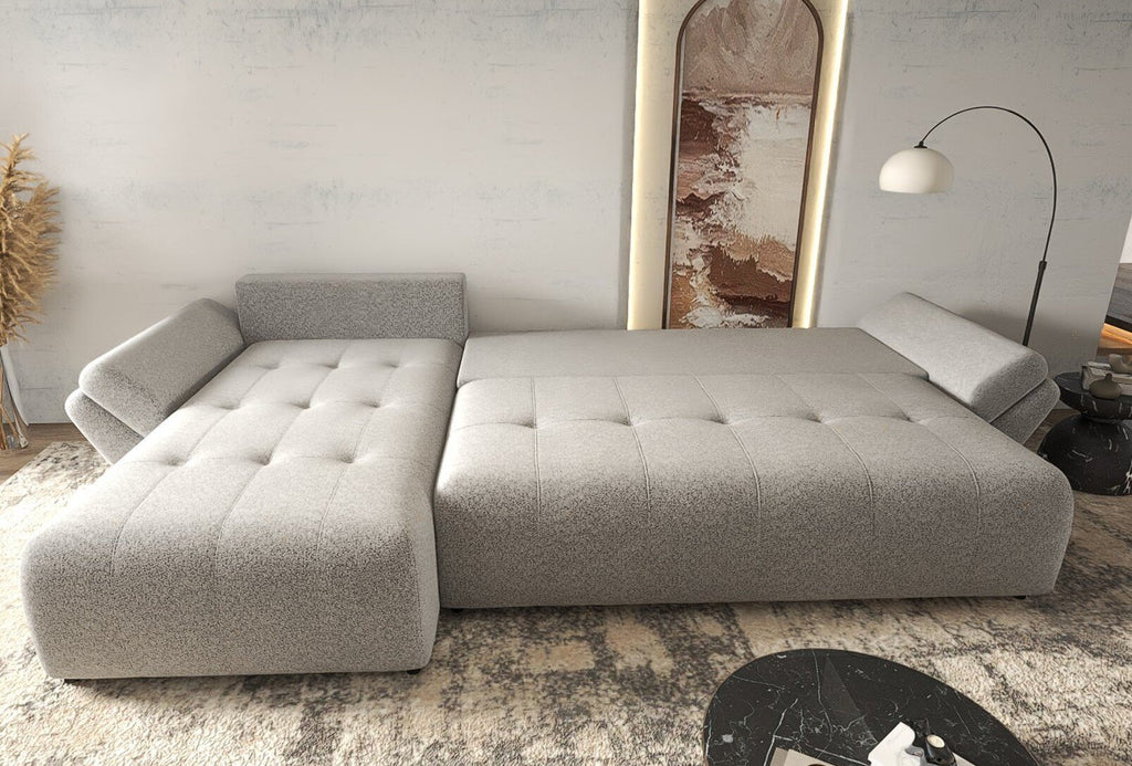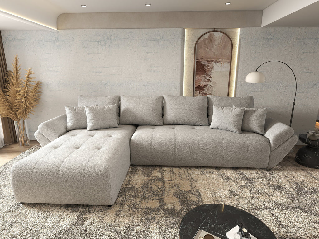 Colțar extensibil dumonde cu ladă de depozitare si sezut confortabil din spuma HR, Berlin XL Euphoria Dove 350x185 cm