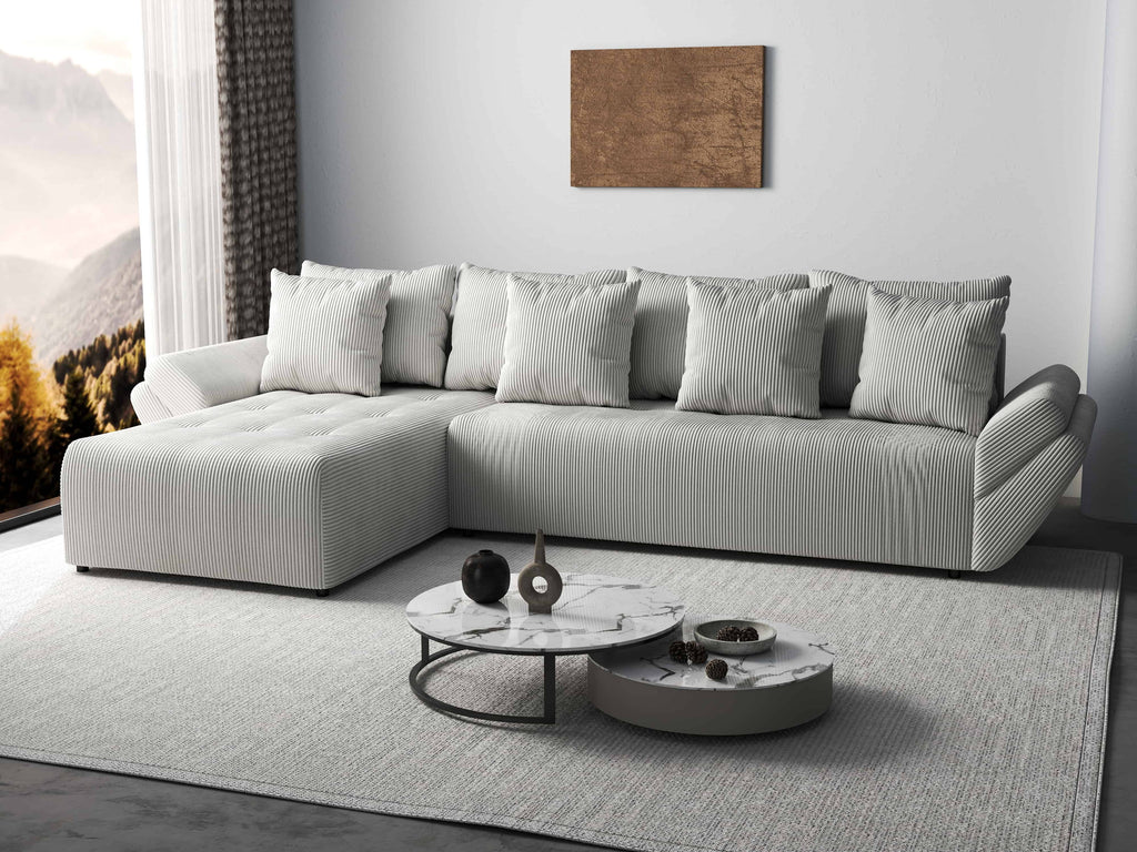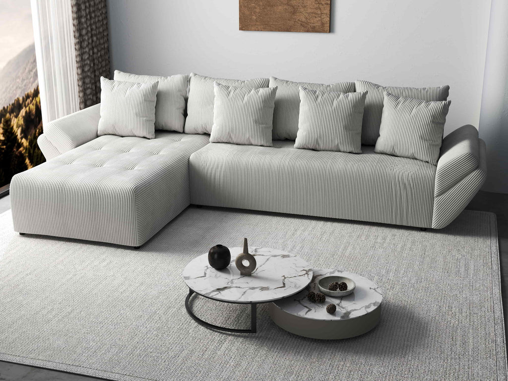 Colțar extensibil dumonde cu ladă de depozitare si sezut confortabil din spuma HR, Berlin XL Zoom Crem 350x185 cm
