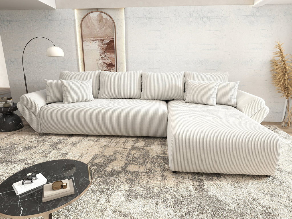 Colțar extensibil dumonde cu ladă de depozitare si sezut confortabil din spuma HR, Berlin XL Zoom Crem 350x185 cm II