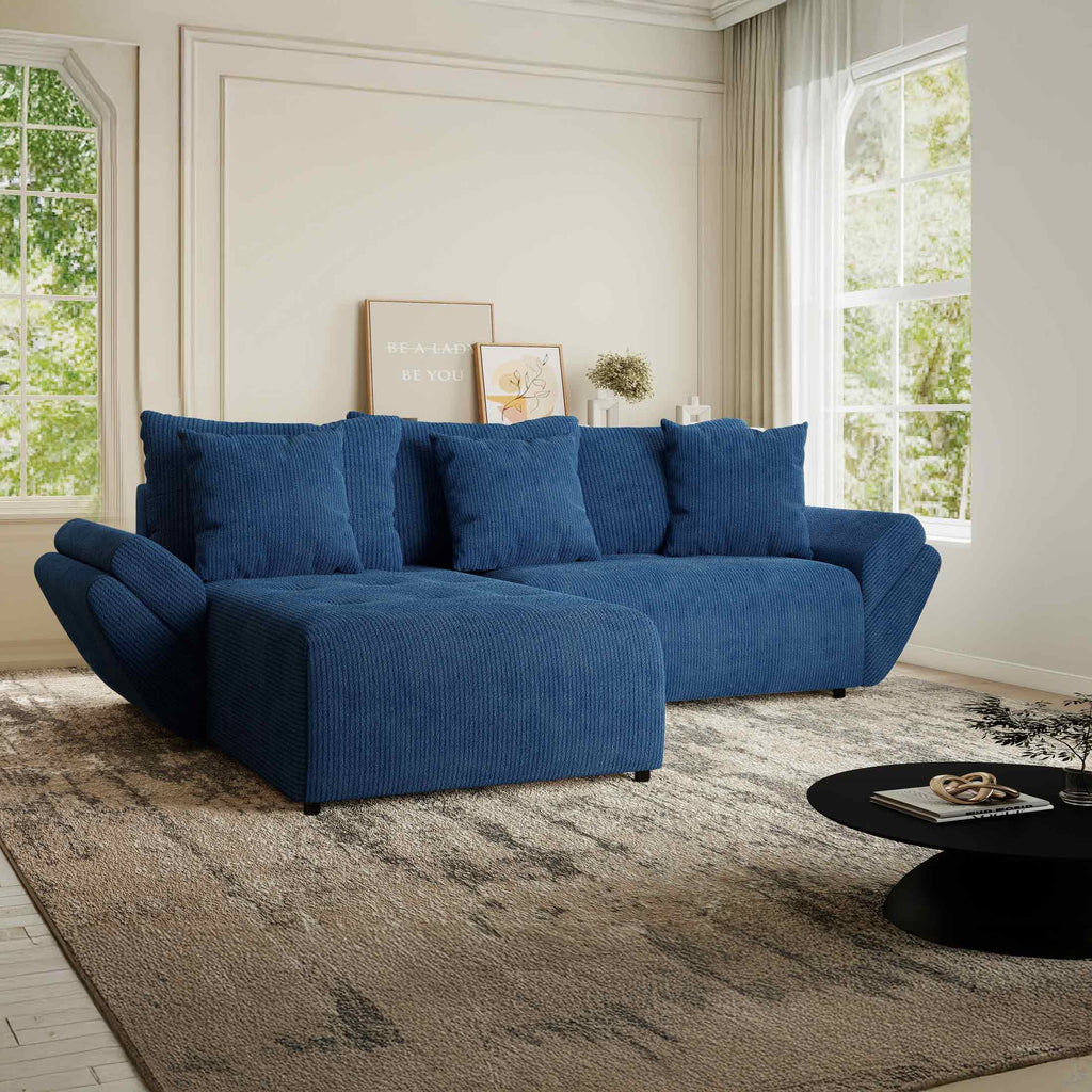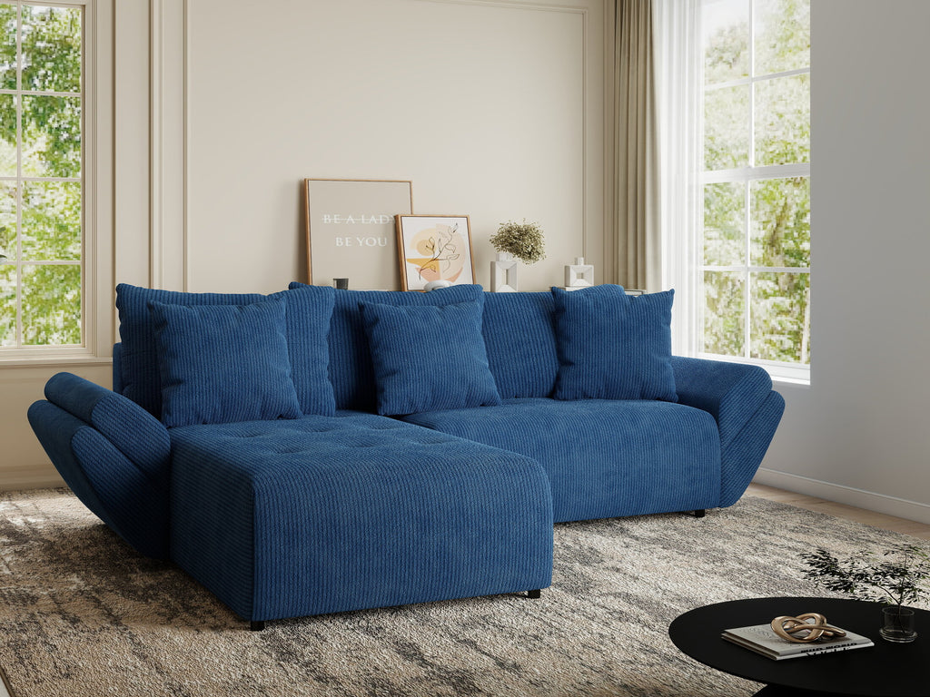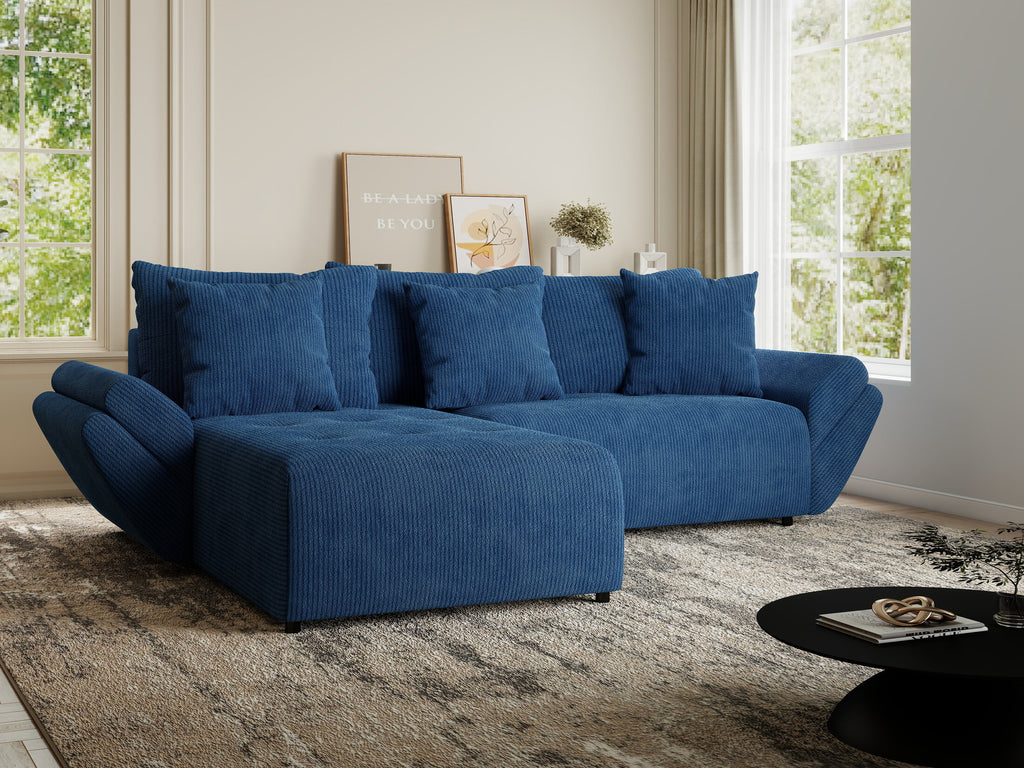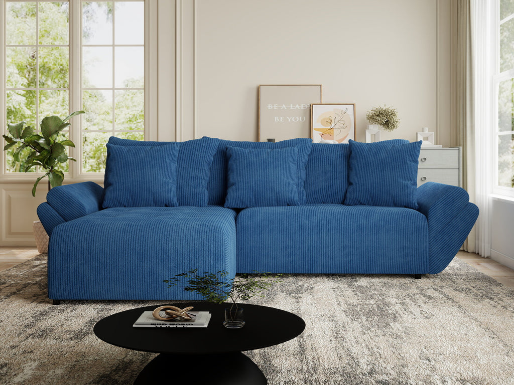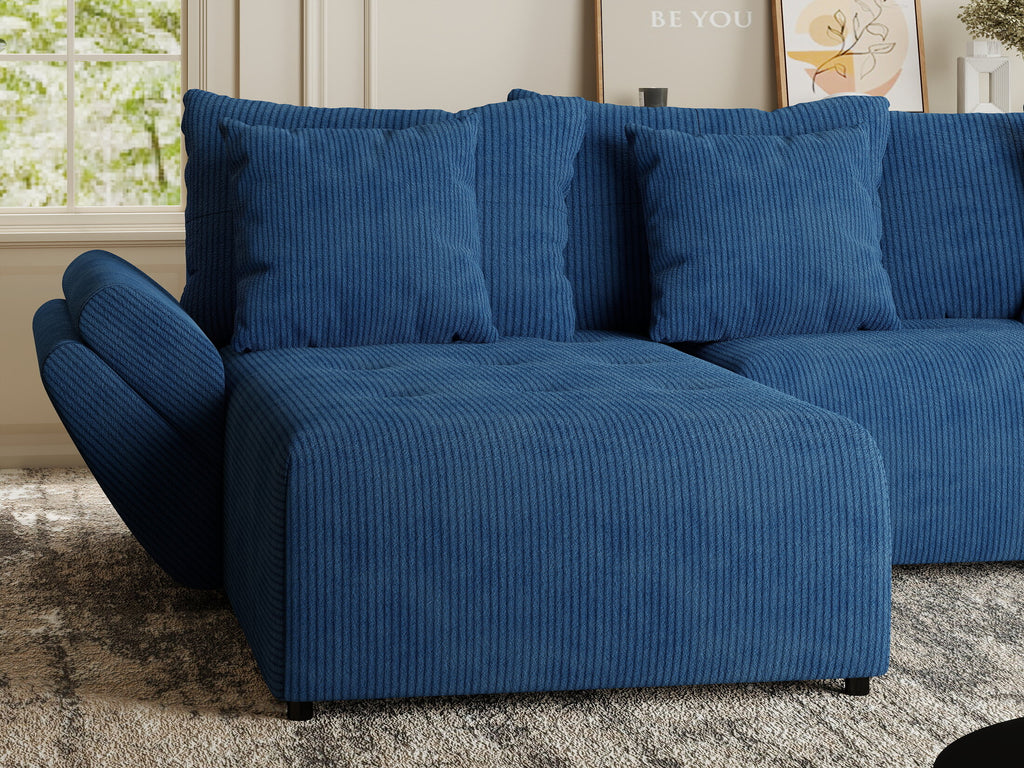 Colțar extensibil dumonde cu ladă de depozitare si sezut confortabil din spuma HR, Berlin Zoom Albastru 280x185 cm