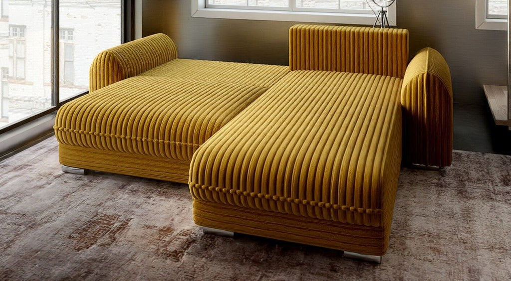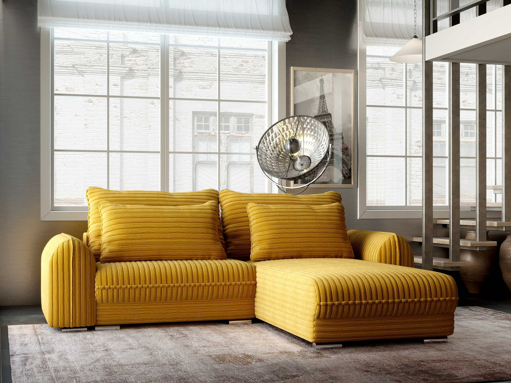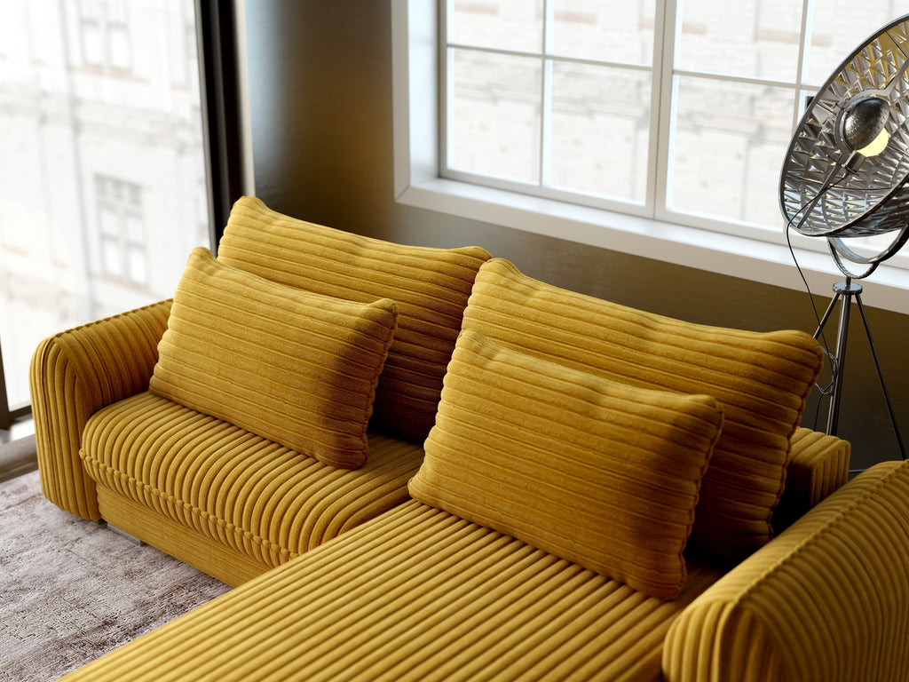Colțar extensibil dumonde cu ladă de depozitare si sezut confortabil din spuma HR, Denver Ambience Mustar 275x185 cm II