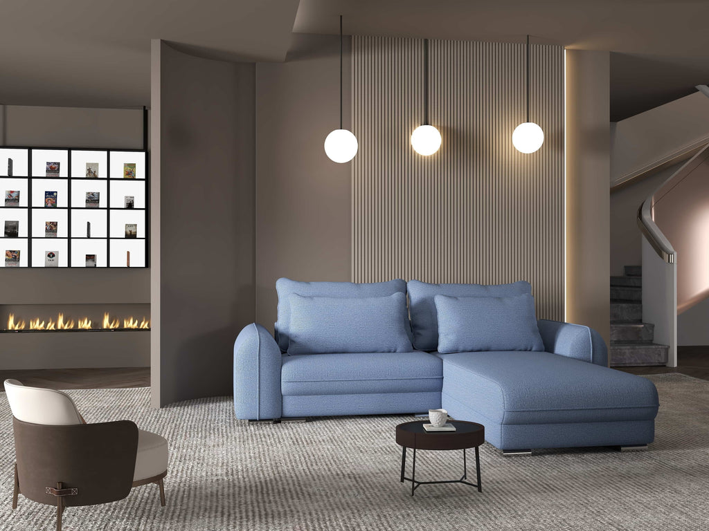 Colțar extensibil dumonde cu ladă de depozitare si sezut confortabil din spuma HR, Denver Enjoy Albastru 275x185 cm II