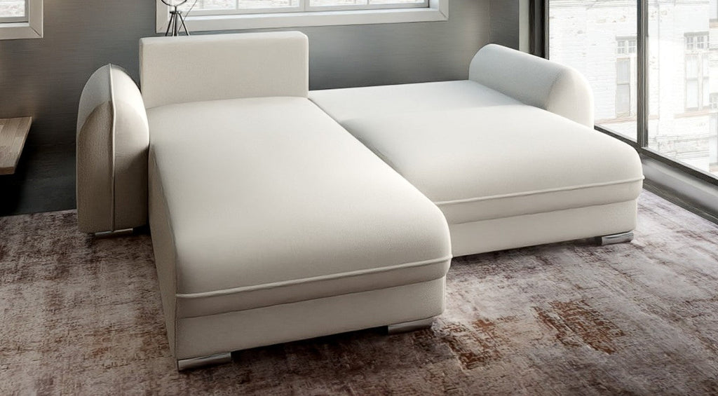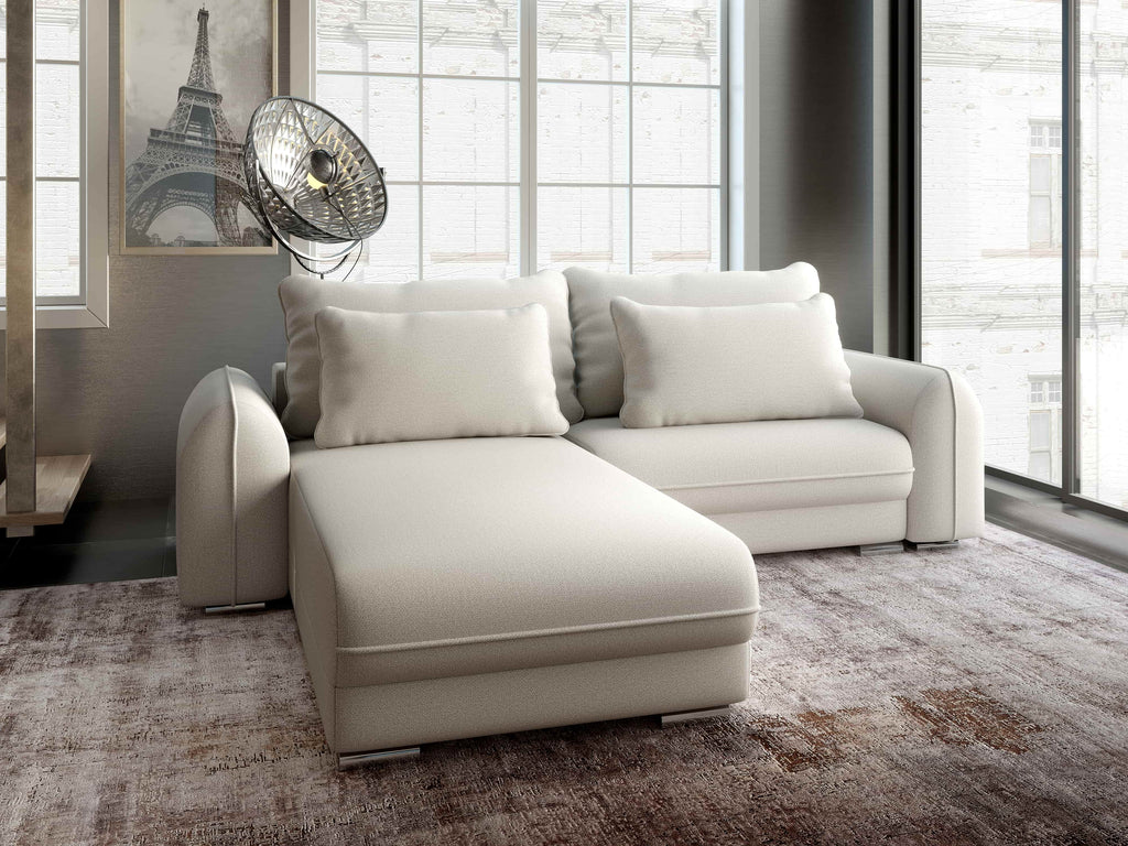 Colțar extensibil dumonde cu ladă de depozitare si sezut confortabil din spuma HR, Denver Enjoy Bej 275x185 cm