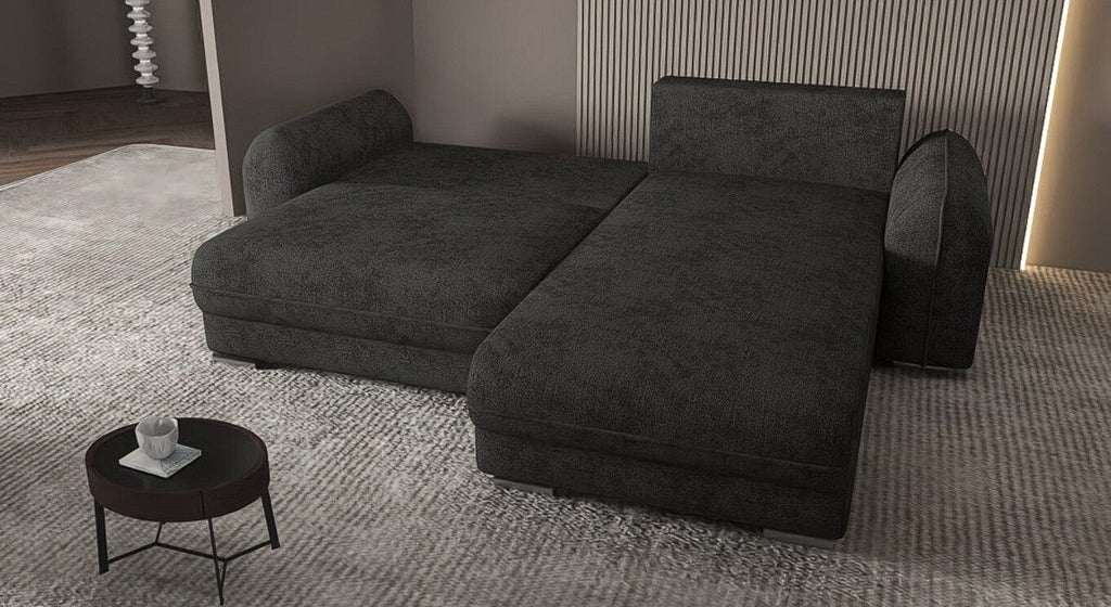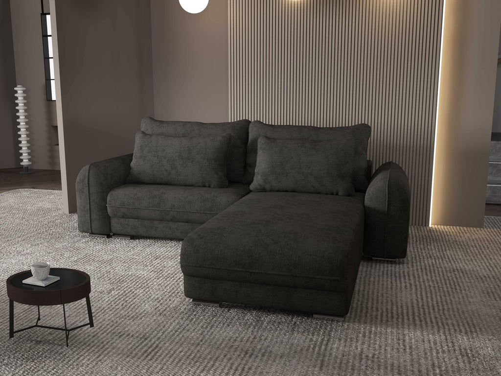 Colțar extensibil dumonde cu ladă de depozitare si sezut confortabil din spuma HR, Denver Enjoy Negru 275x185 cm II