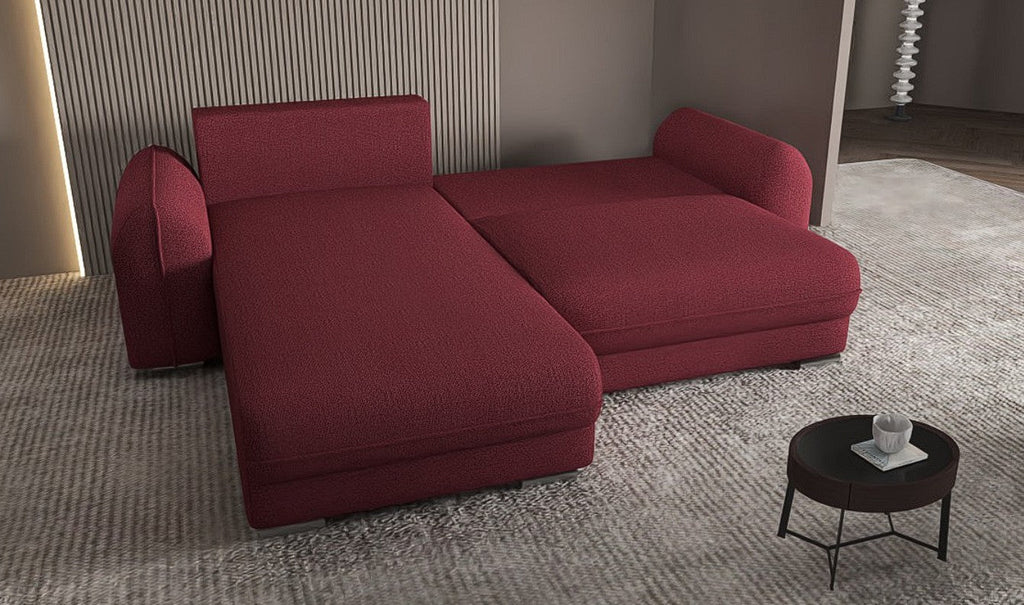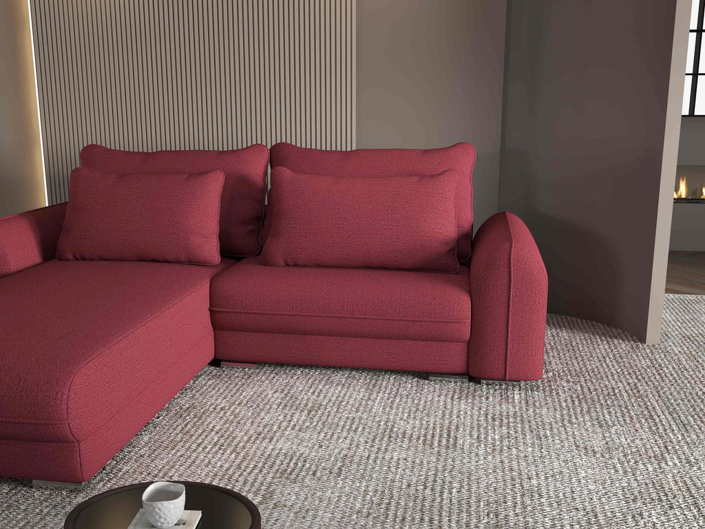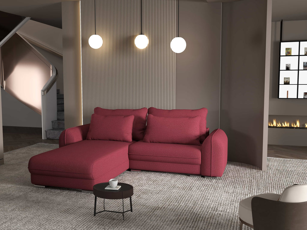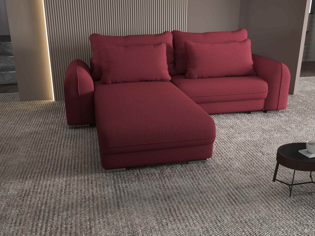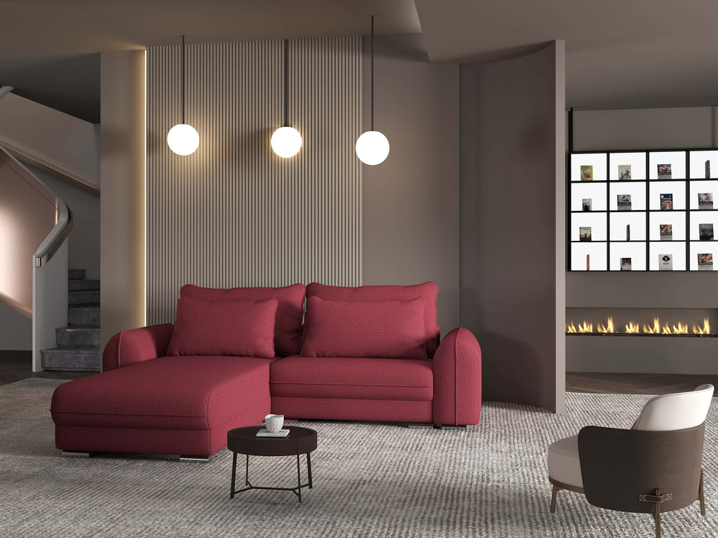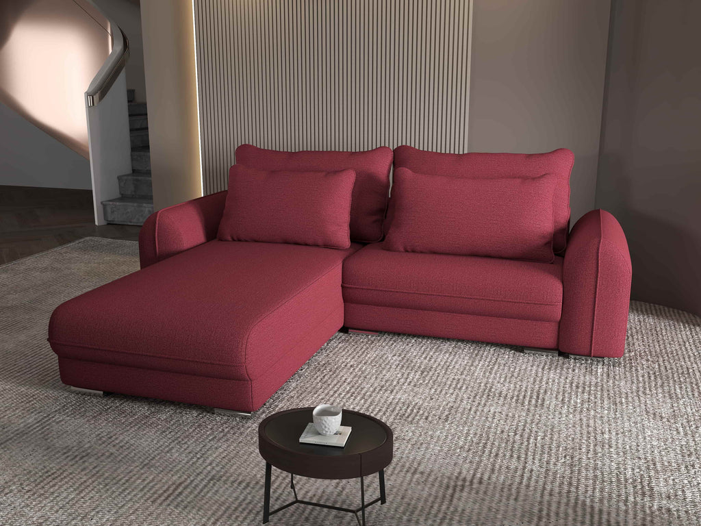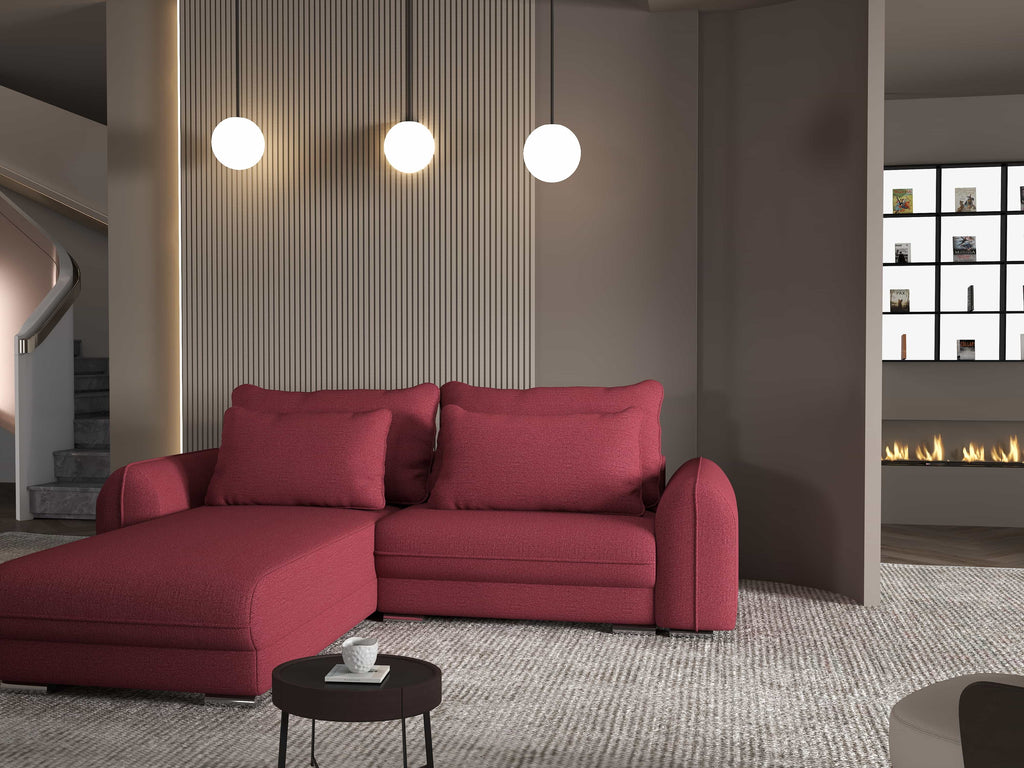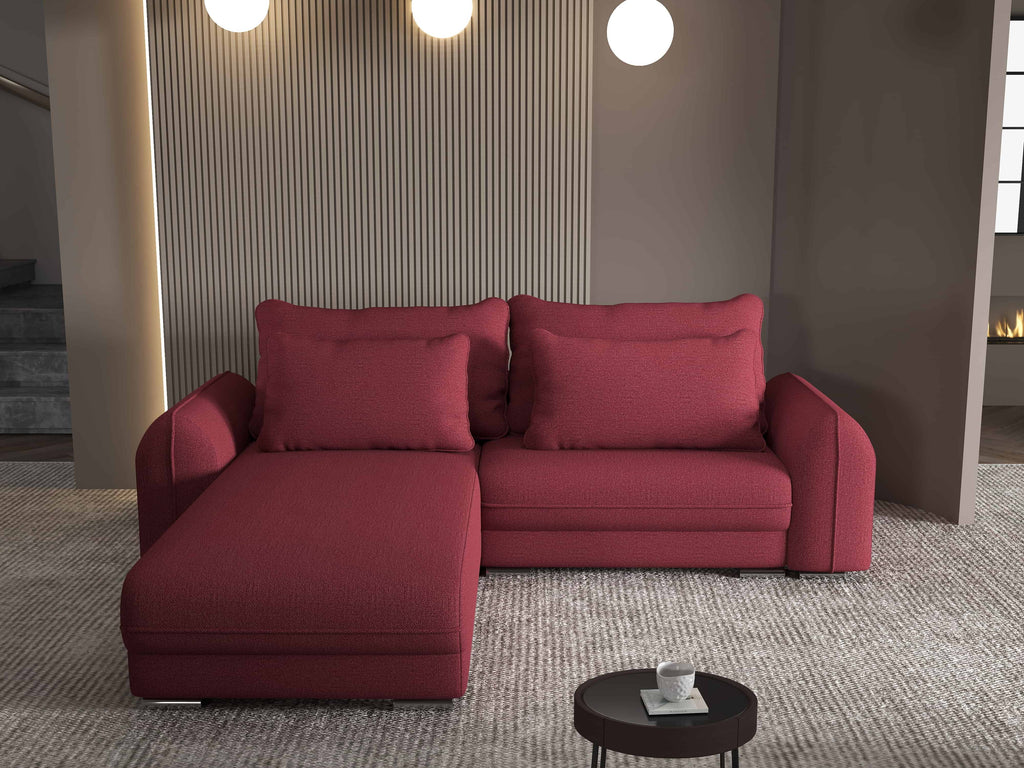 Colțar extensibil dumonde cu ladă de depozitare si sezut confortabil din spuma HR, Denver Enjoy Rosu 275x185 cm