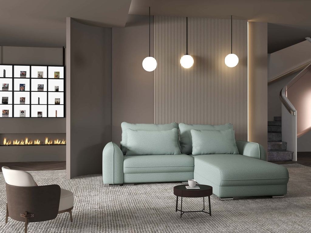 Colțar extensibil dumonde cu ladă de depozitare si sezut confortabil din spuma HR, Denver Enjoy Mint 275x185 cm II