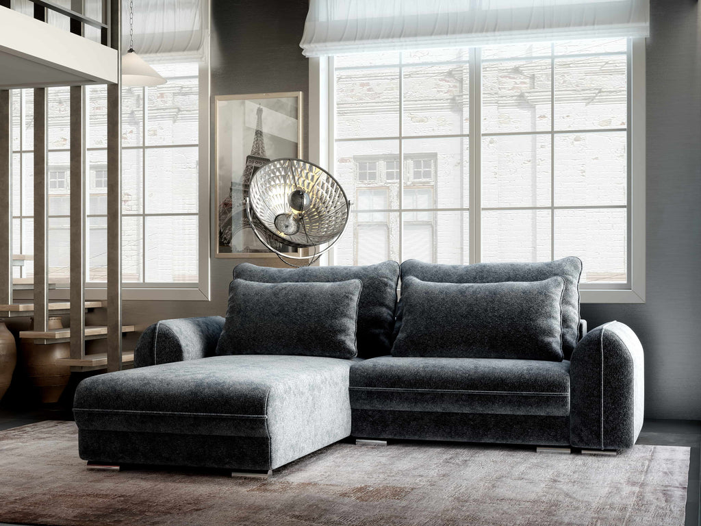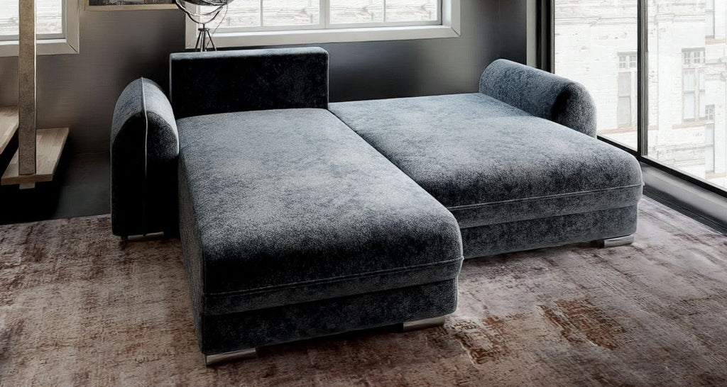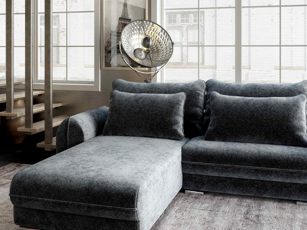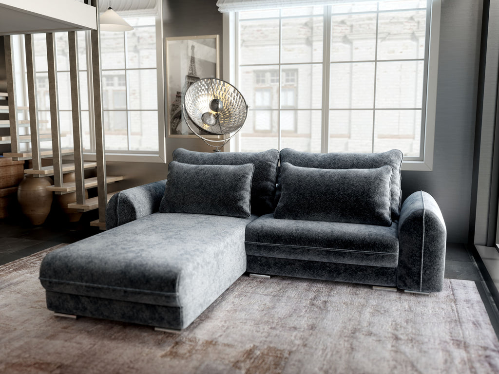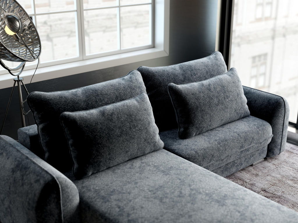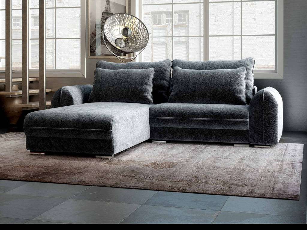 Colțar extensibil dumonde cu ladă de depozitare si sezut confortabil din spuma HR, Denver Euphoria Grafit 275x185 cm