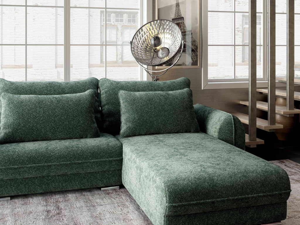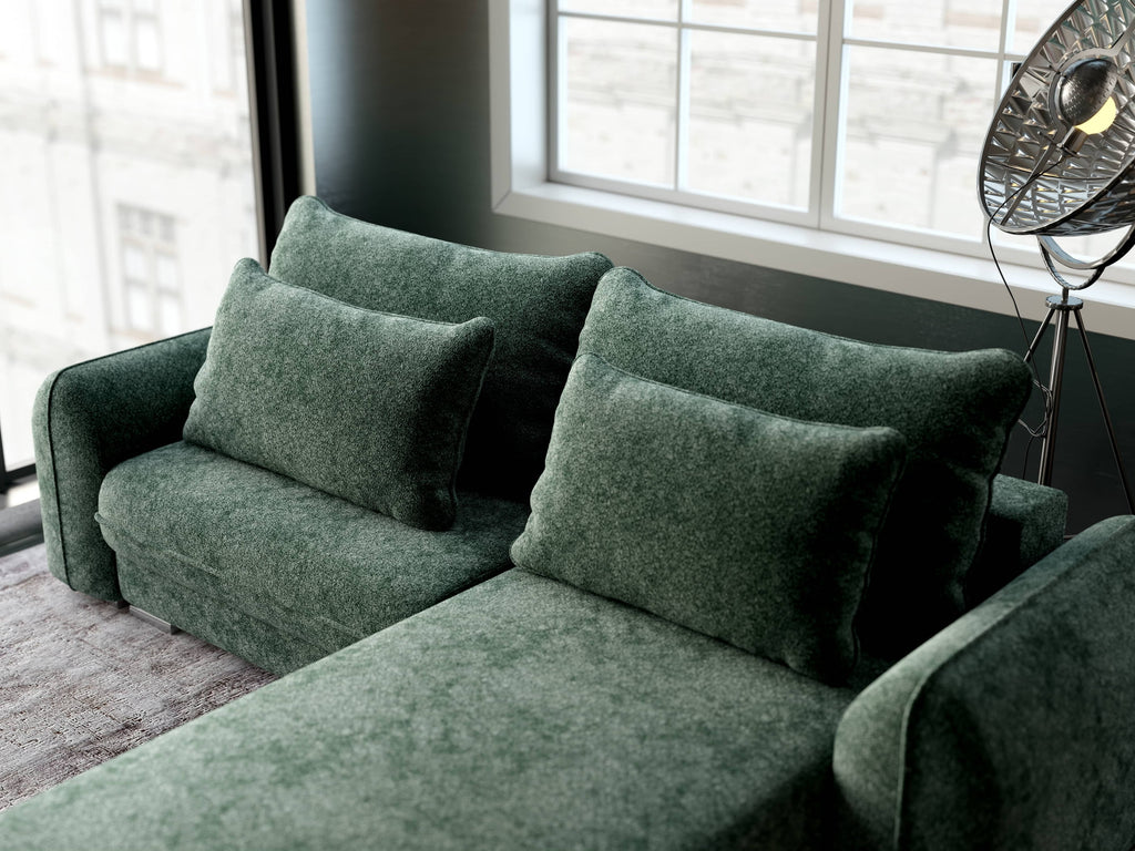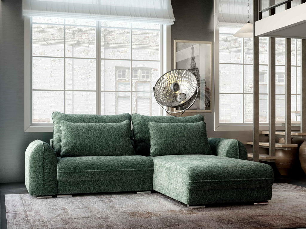 Colțar extensibil dumonde cu ladă de depozitare si sezut confortabil din spuma HR, Denver Euphoria Verde 275x185 cm II