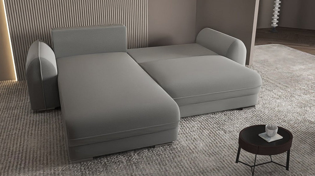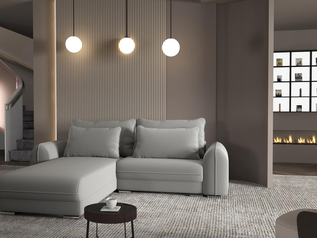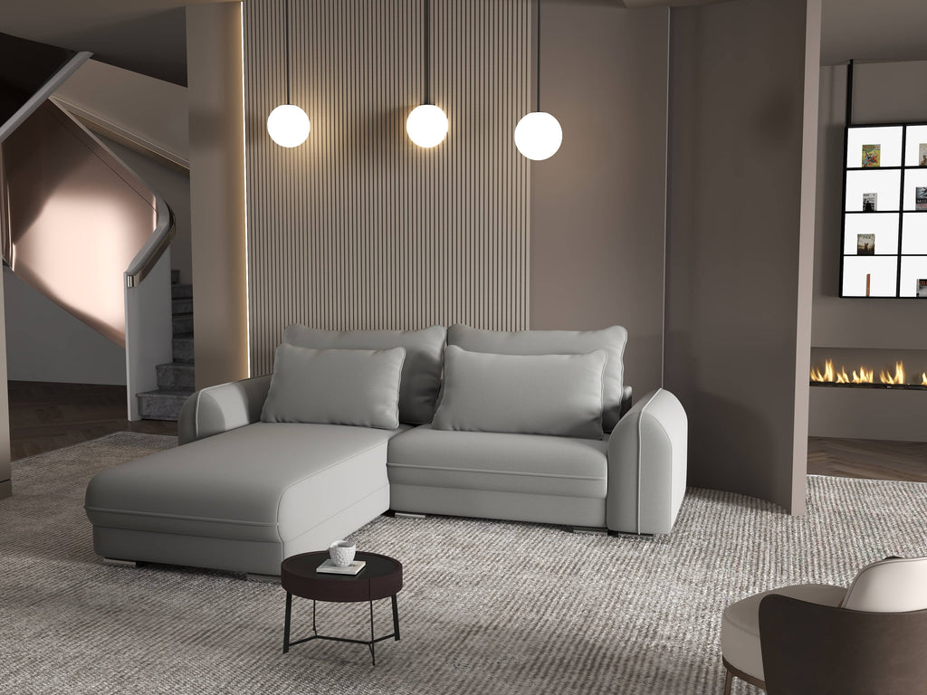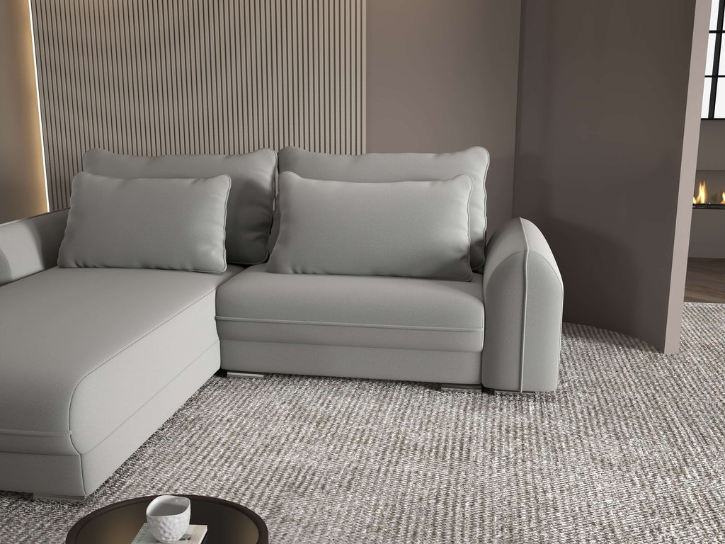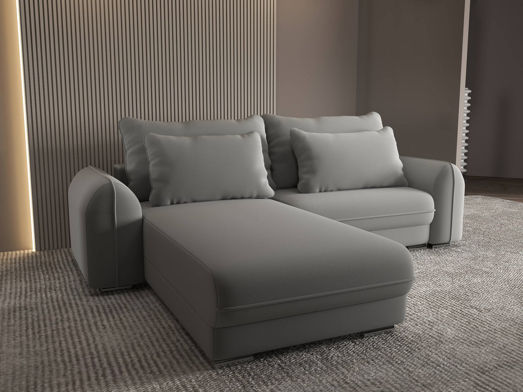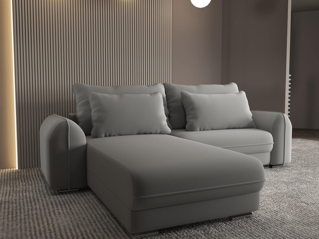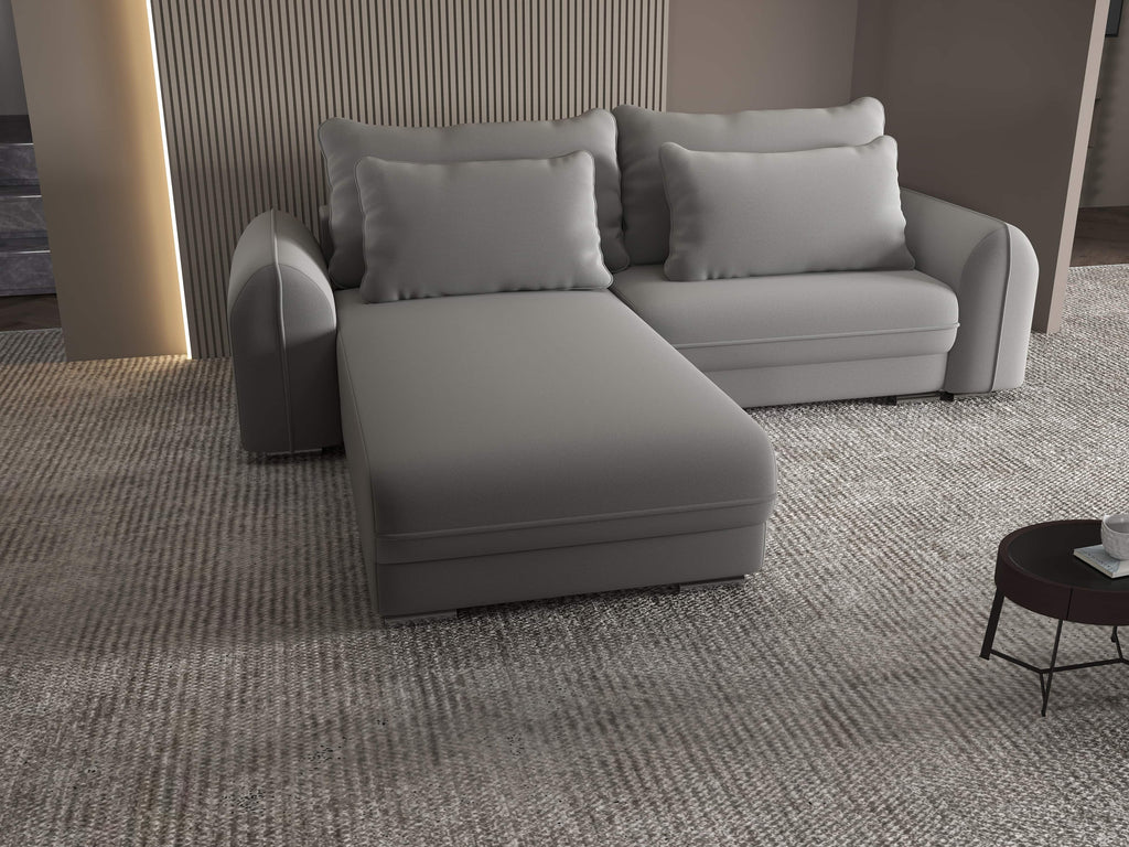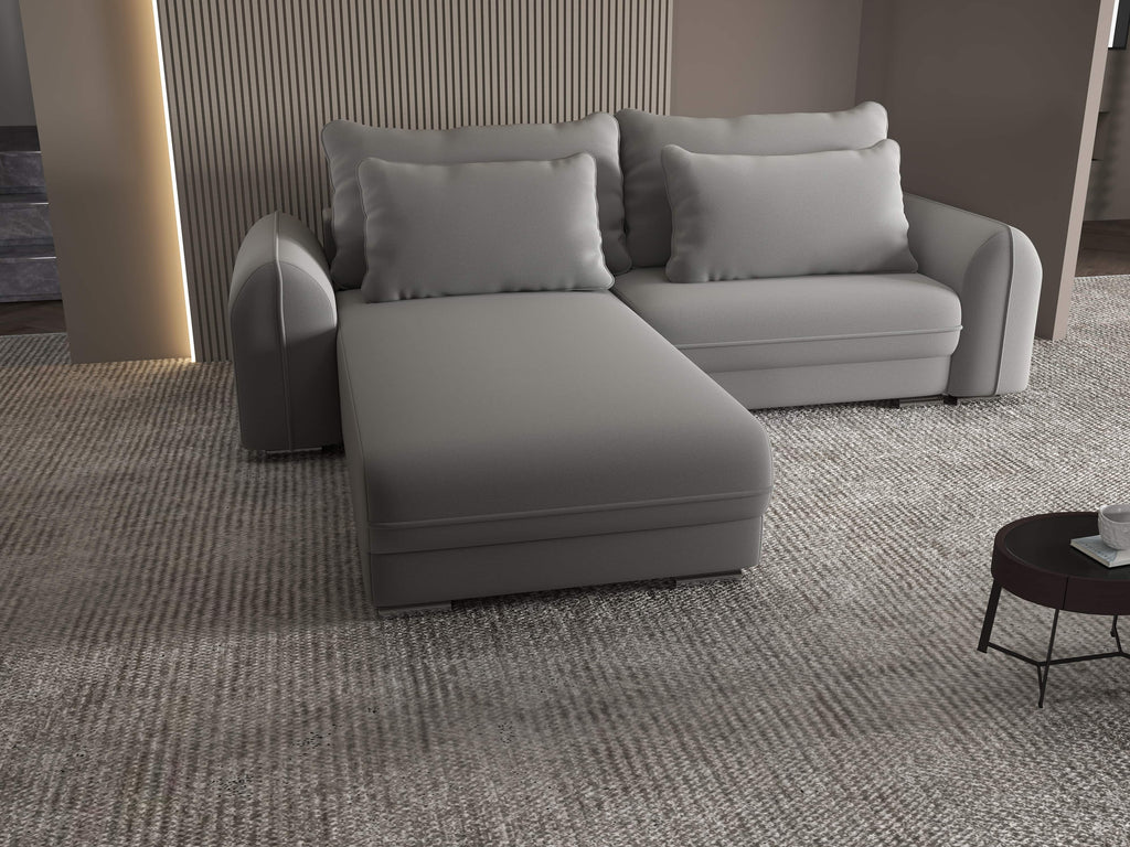 Colțar extensibil dumonde cu ladă de depozitare si sezut confortabil din spuma HR, Denver Royal Gri 275x185 cm