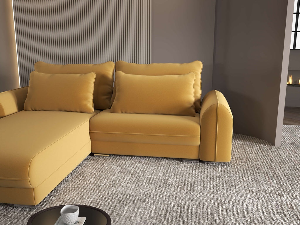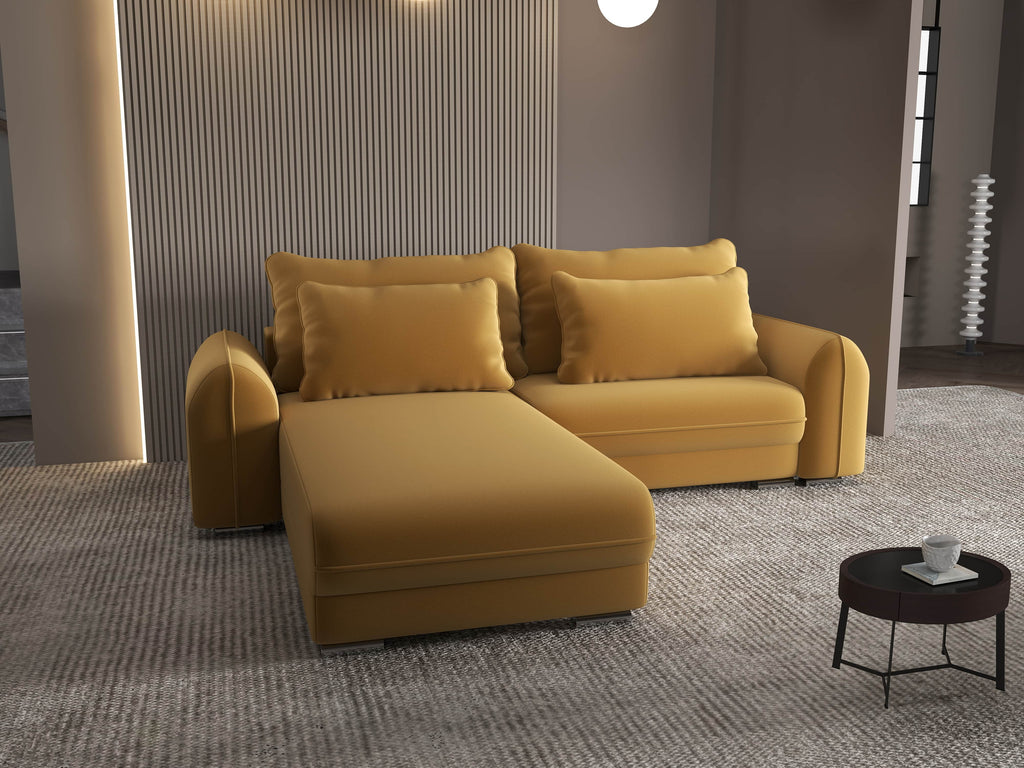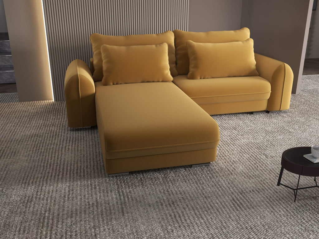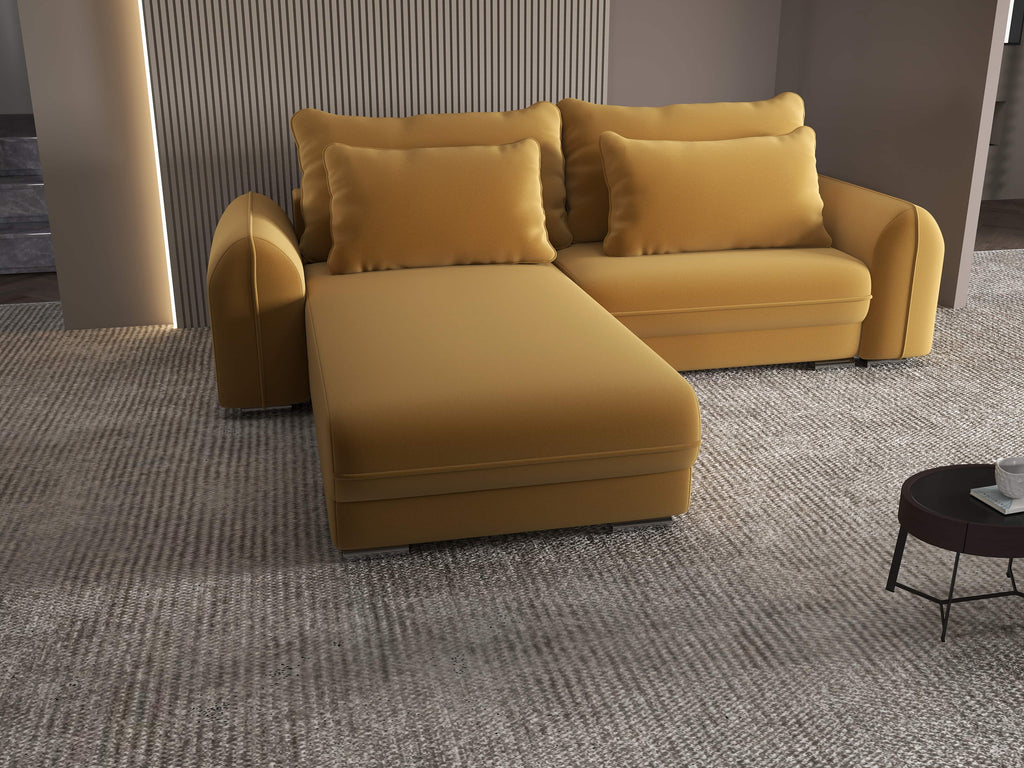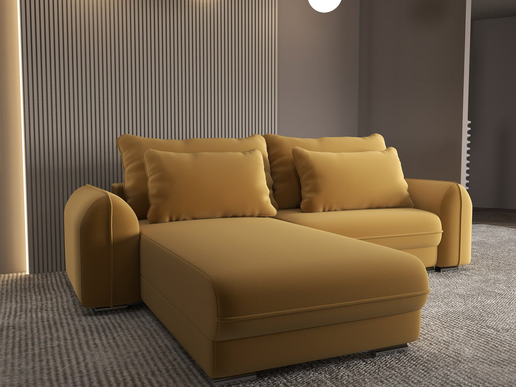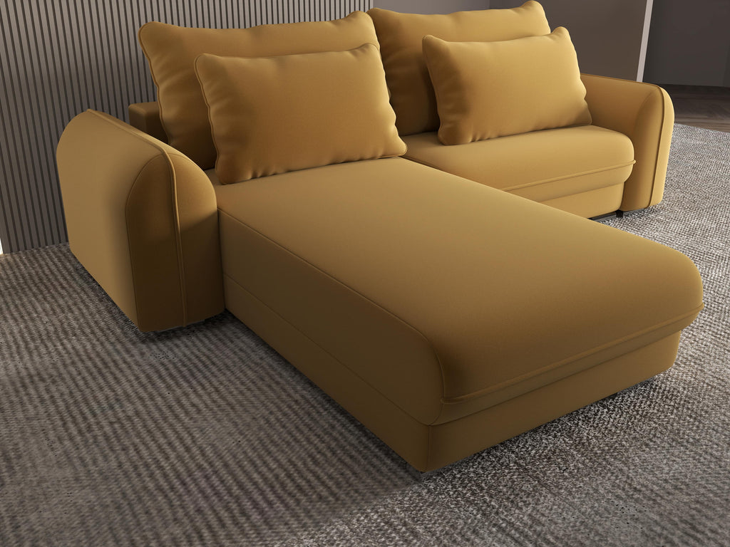 Colțar extensibil dumonde cu ladă de depozitare si sezut confortabil din spuma HR, Denver Royal Mustar 275x185 cm