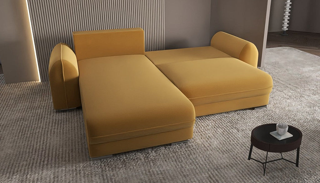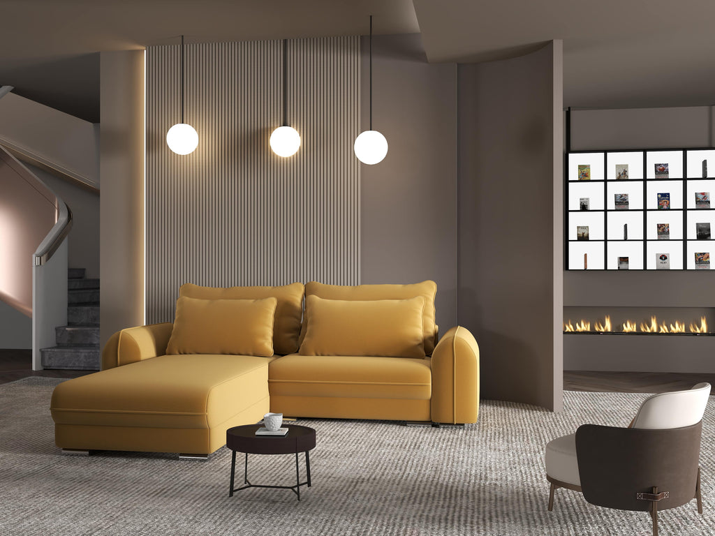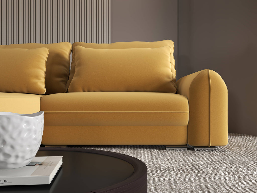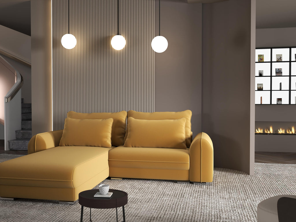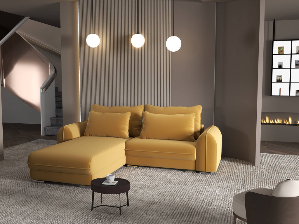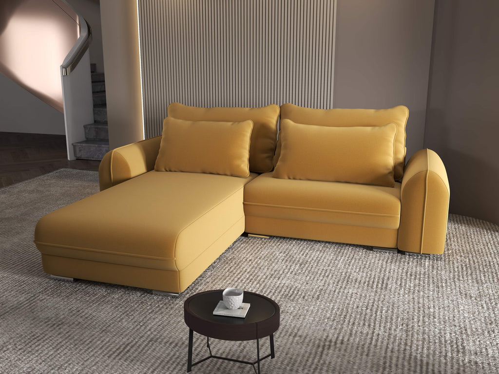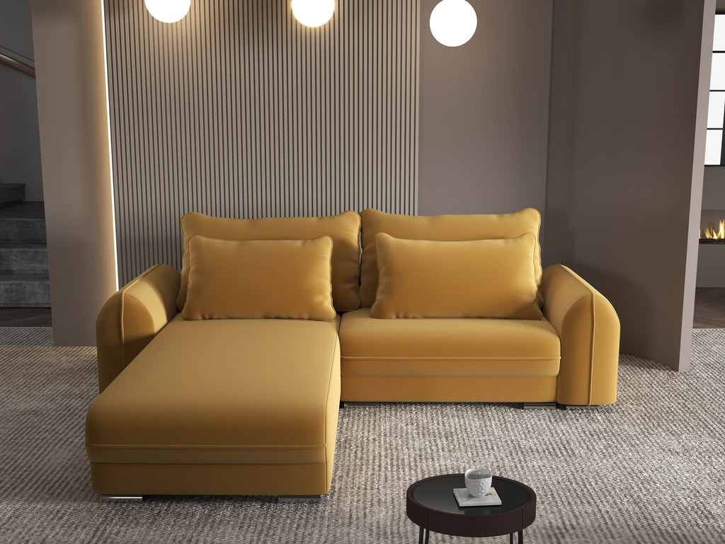 Colțar extensibil dumonde cu ladă de depozitare si sezut confortabil din spuma HR, Denver Royal Mustar 275x185 cm