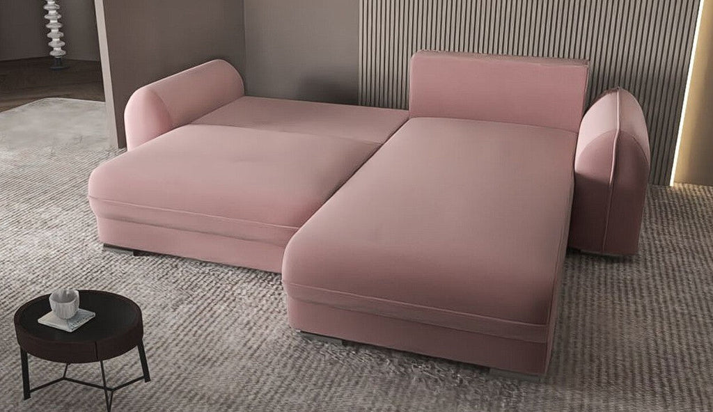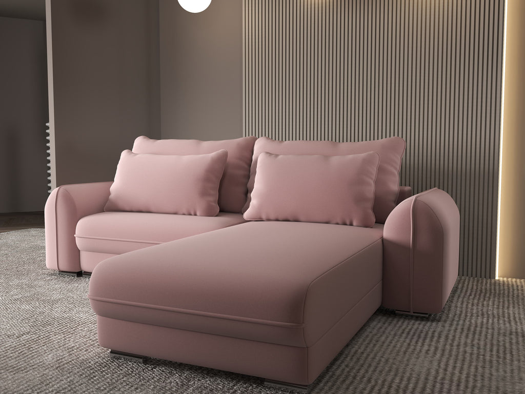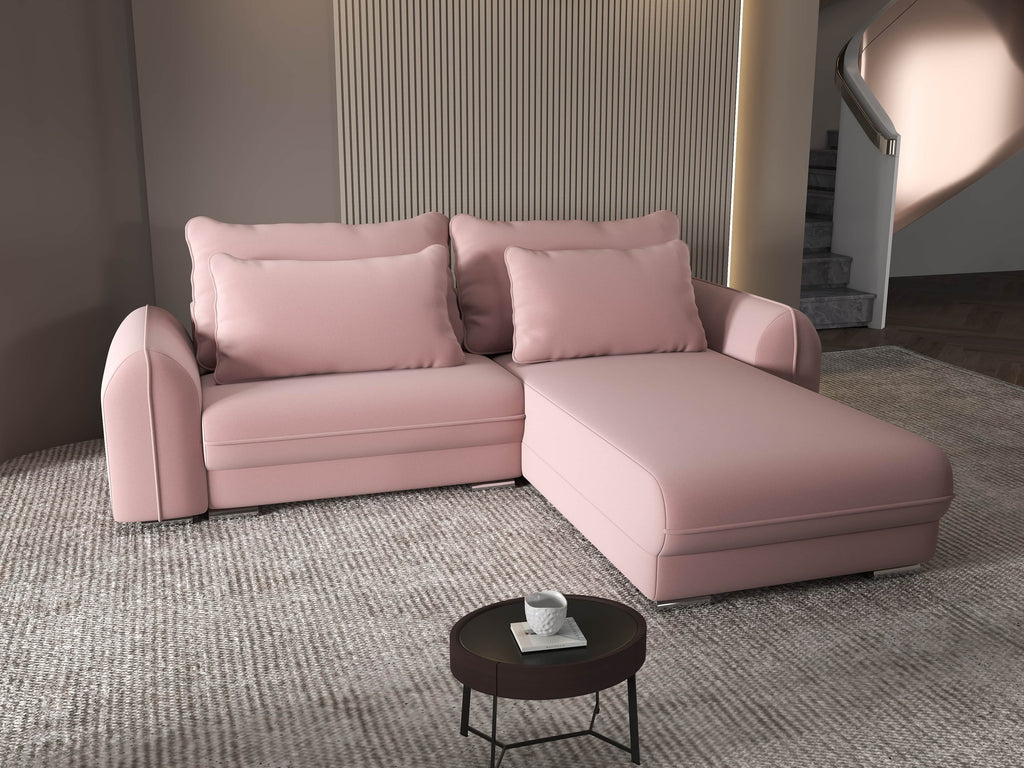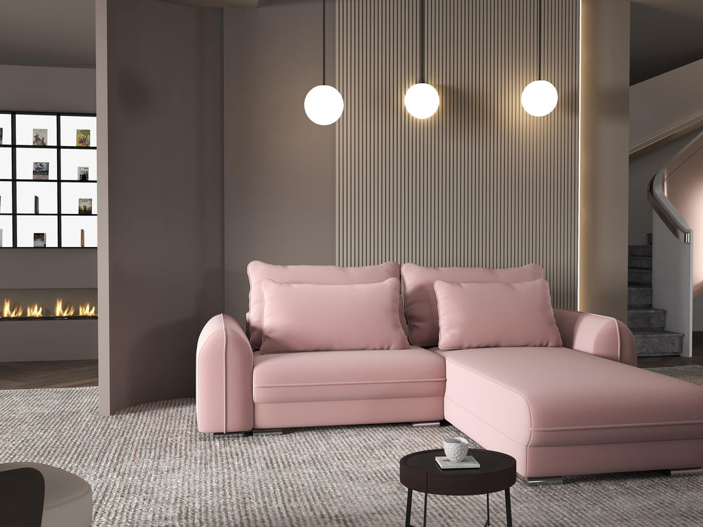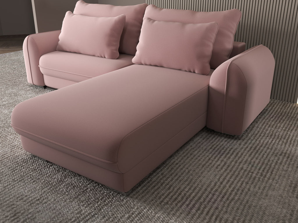 Colțar extensibil dumonde cu ladă de depozitare si sezut confortabil din spuma HR, Denver Royal Roz 275x185 cm II