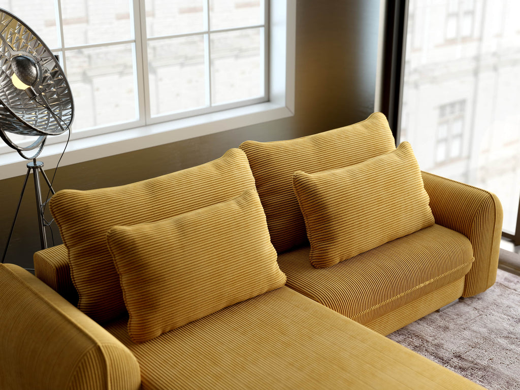 Colțar extensibil dumonde cu ladă de depozitare si sezut confortabil din spuma HR, Denver Zoom Mustar 275x185 cm