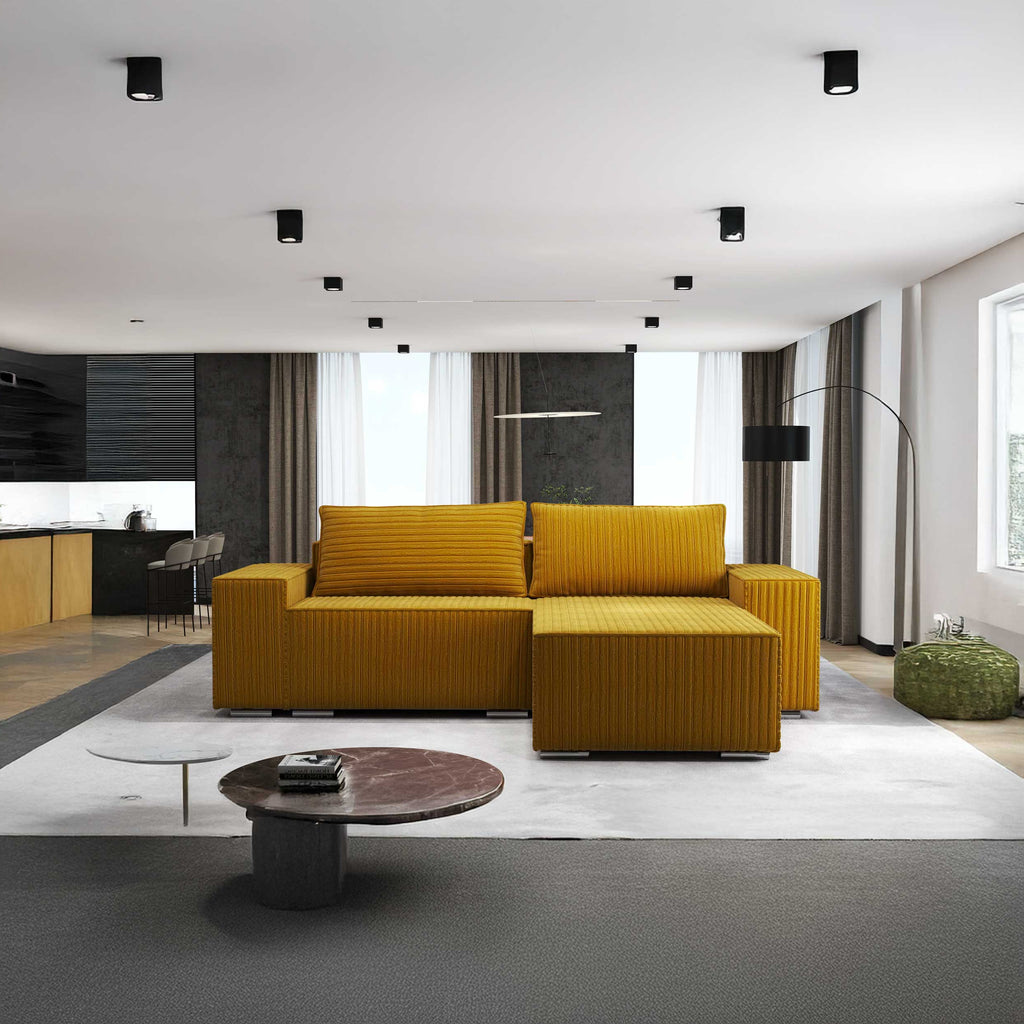 Colțar extensibil dumonde cu ladă de depozitare si sezut confortabil din spuma HR, Dream Ambience Mustar 290x185 cm II