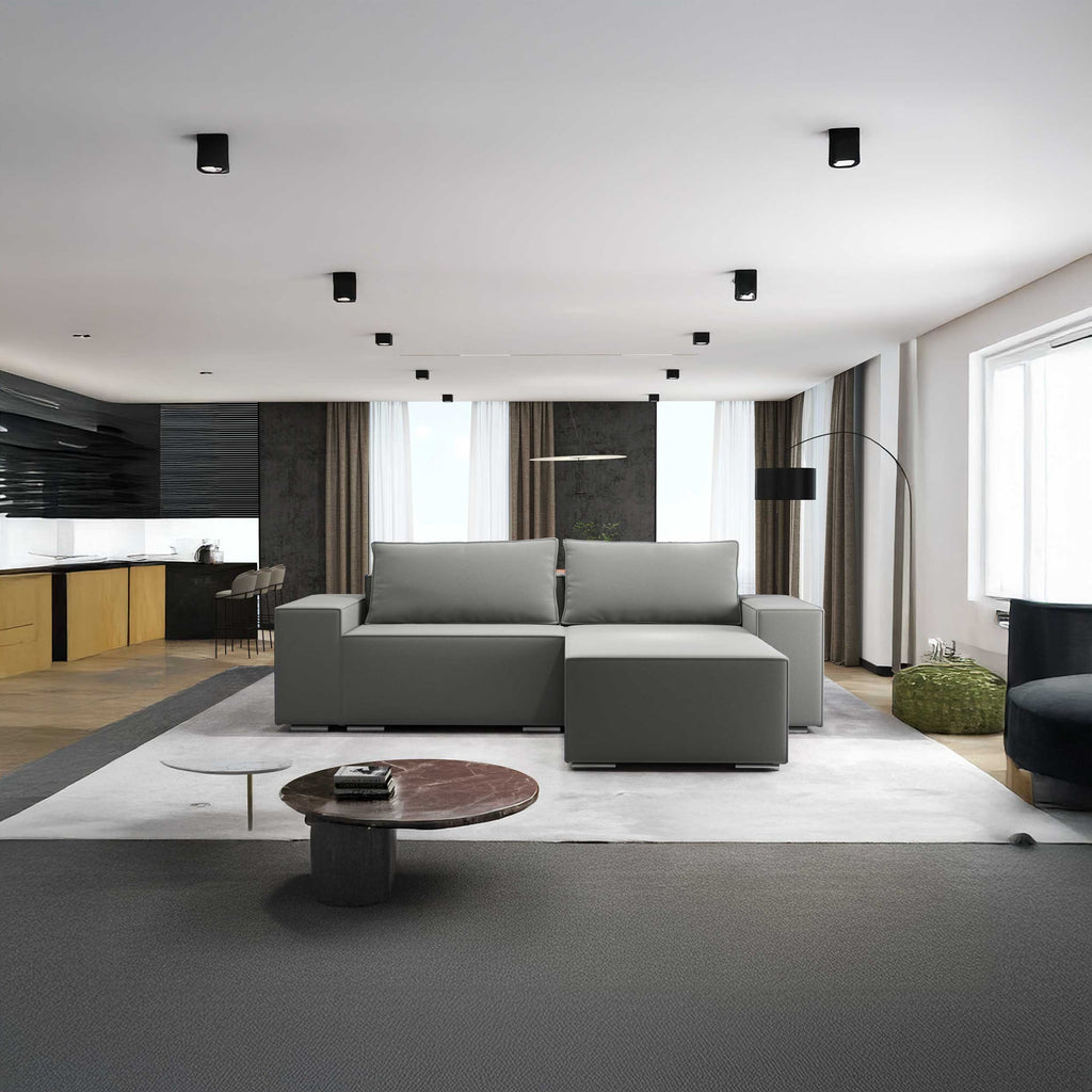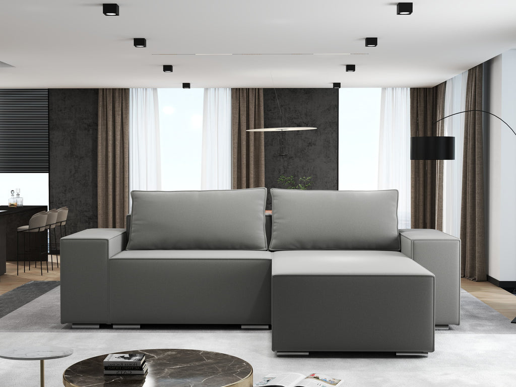Colțar extensibil dumonde cu ladă de depozitare si sezut confortabil din spuma HR, Dream Royal Gri 290x185 cm II