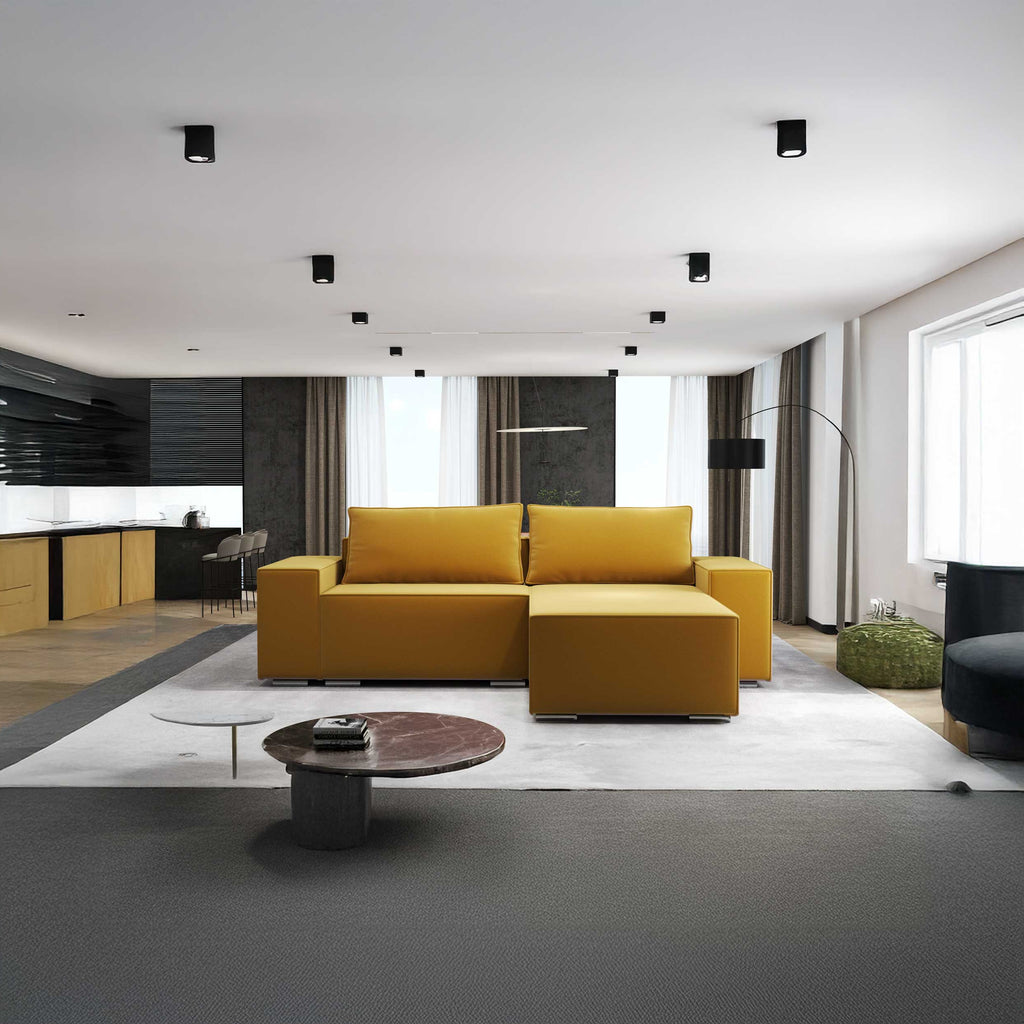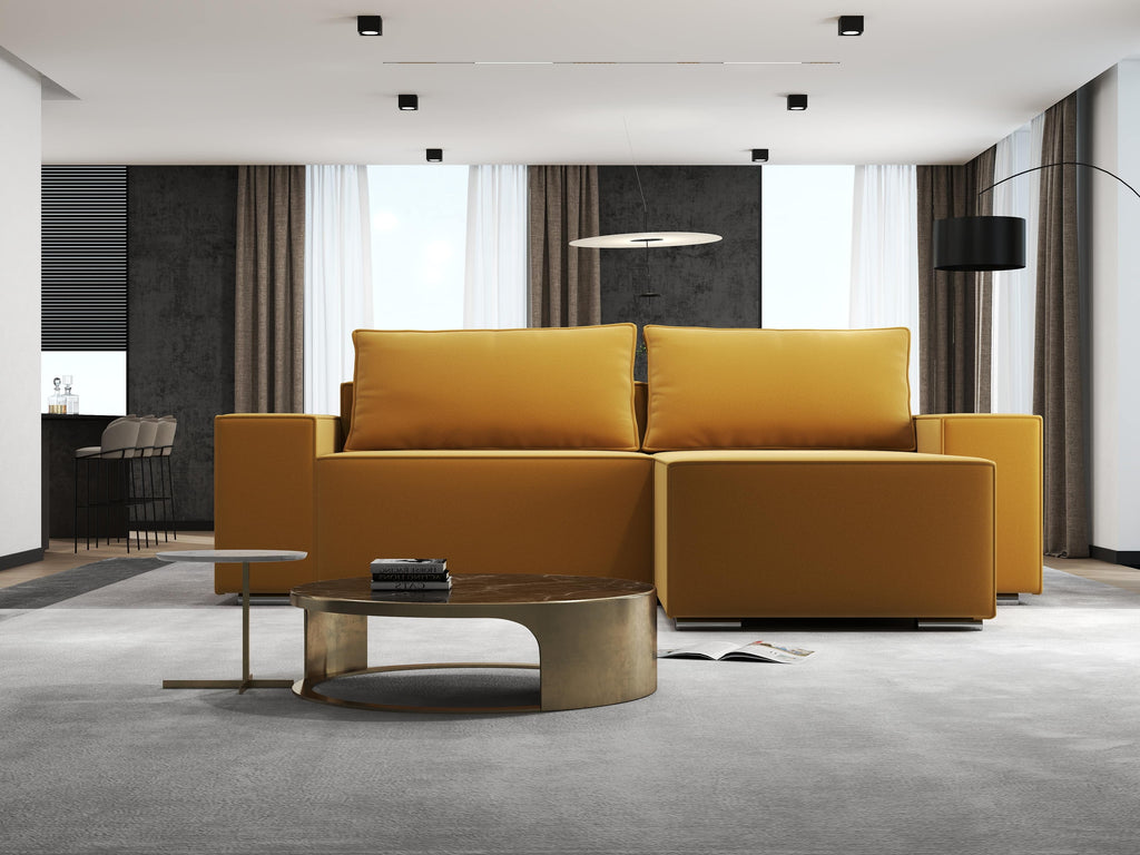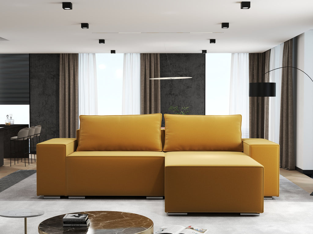 Colțar extensibil dumonde cu ladă de depozitare si sezut confortabil din spuma HR, Dream Royal Mustar 290x185 cm II