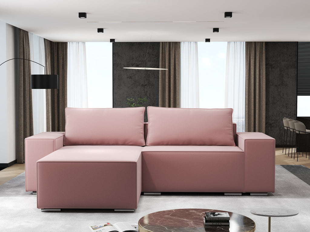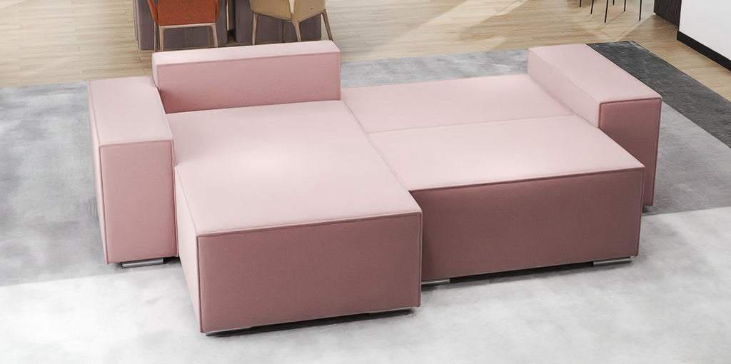 Colțar extensibil dumonde cu ladă de depozitare si sezut confortabil din spuma HR, Dream Royal Roz 290x185 cm