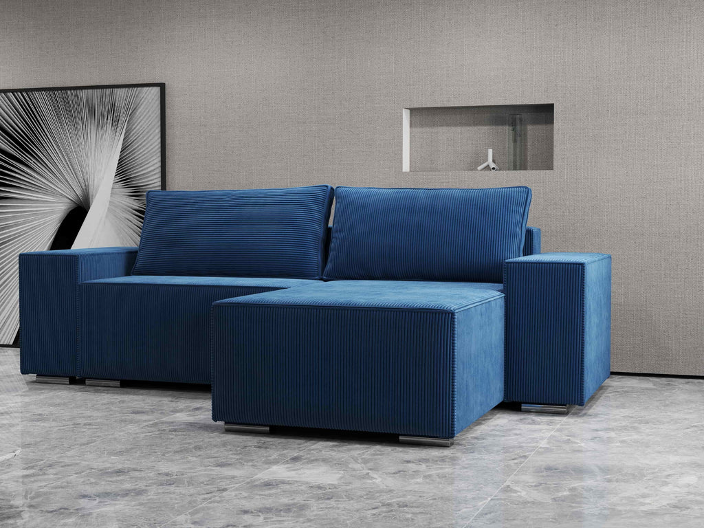 Colțar extensibil dumonde cu ladă de depozitare si sezut confortabil din spuma HR, Dream Zoom Albastru 290x185 cm II