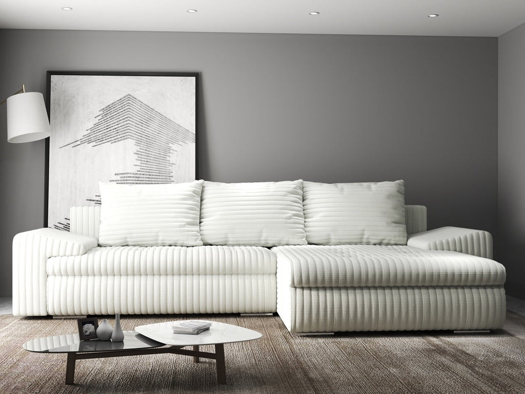 Colțar extensibil dumonde cu ladă de depozitare si sezut confortabil din spuma HR, Leonardo Ambience Ivory 255x193 cm II