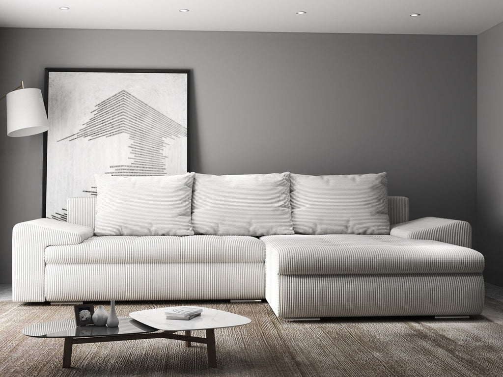 Colțar extensibil dumonde cu ladă de depozitare si sezut confortabil din spuma HR, Leonardo Zoom Crem 255x193 cm II