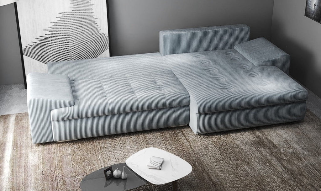 Colțar extensibil dumonde cu ladă de depozitare si sezut confortabil din spuma HR, Leonardo Zoom Grey 255x193 cm II