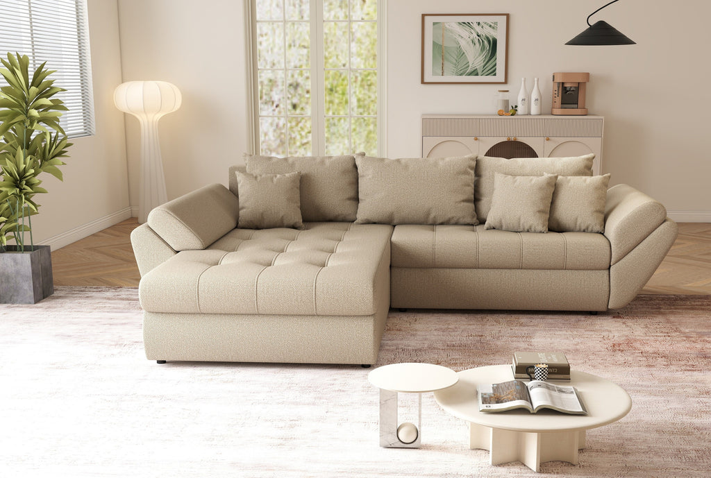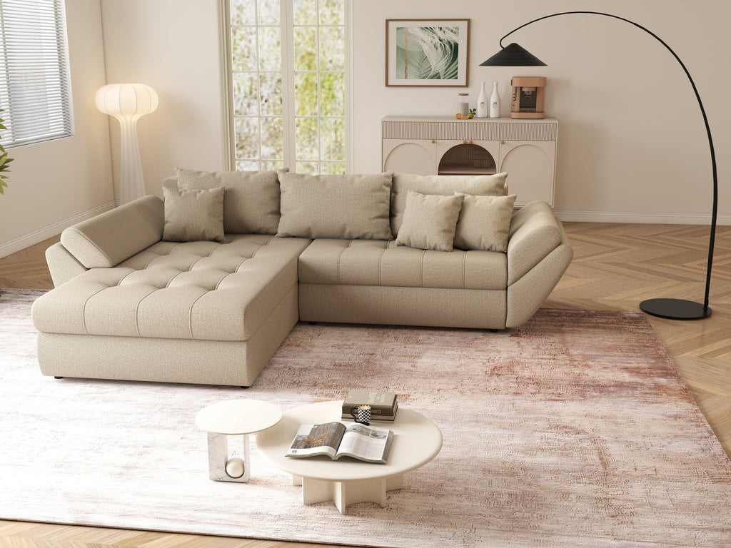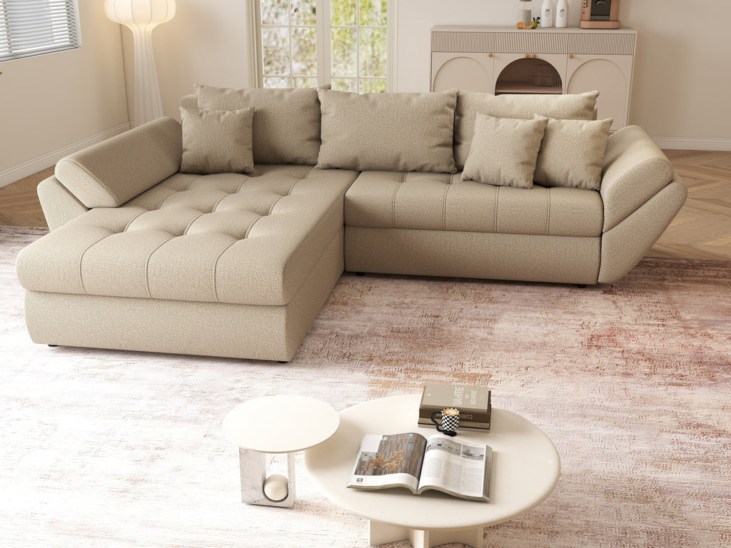 Colțar extensibil dumonde cu ladă de depozitare si sezut confortabil din spuma HR, Loana Enjoy Camel 270x185 cm