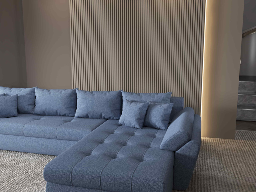 Colțar extensibil dumonde cu ladă de depozitare si sezut confortabil din spuma HR, Loana XL Enjoy Albastru II 335x185 cm